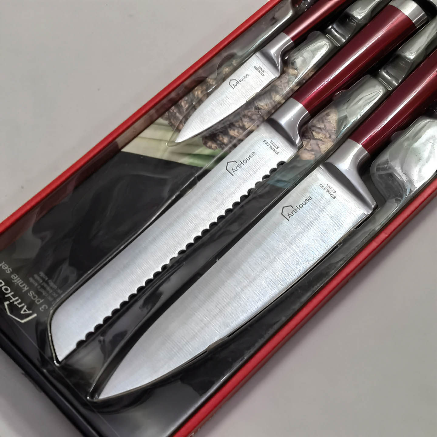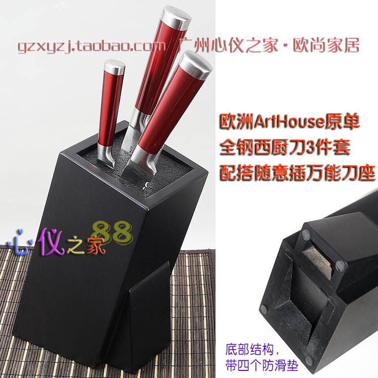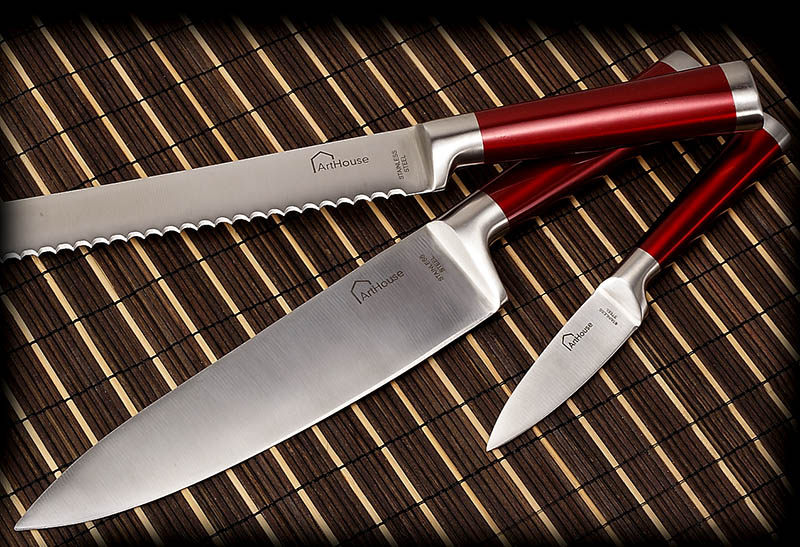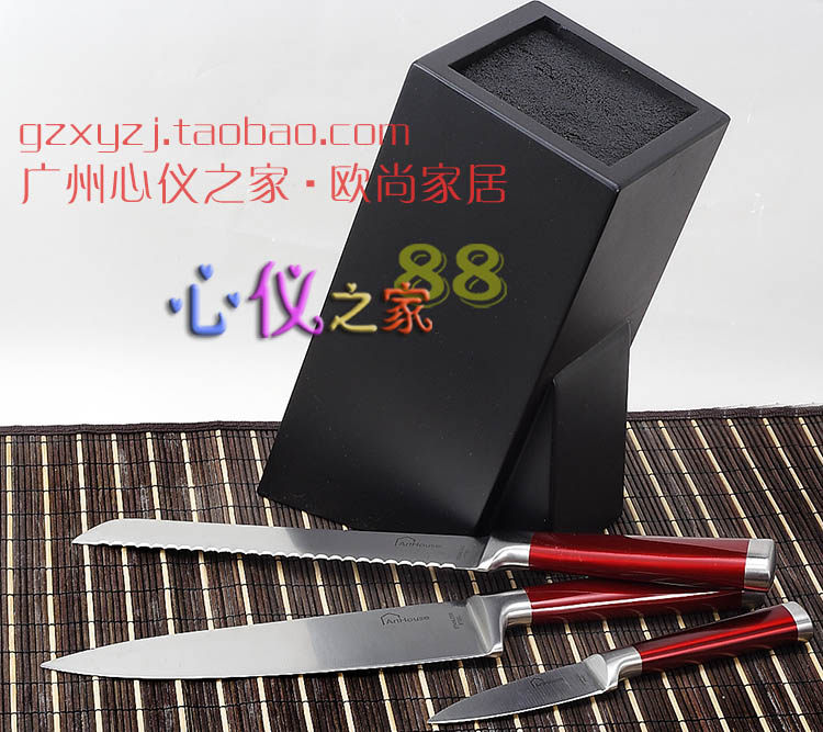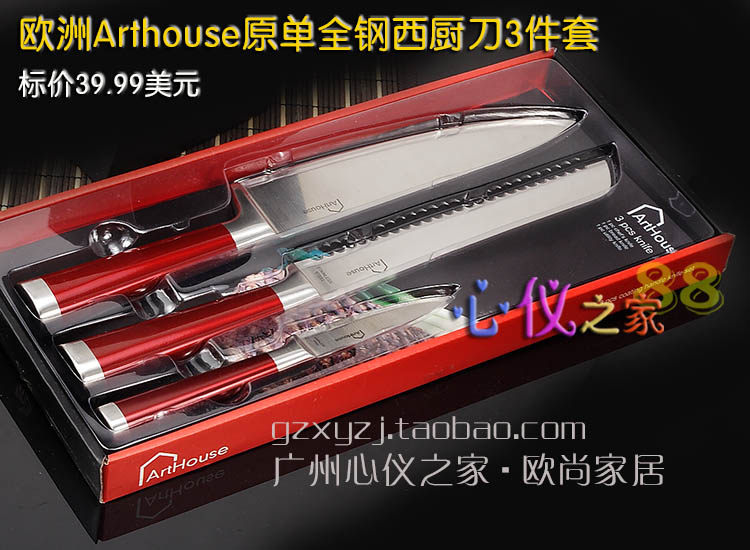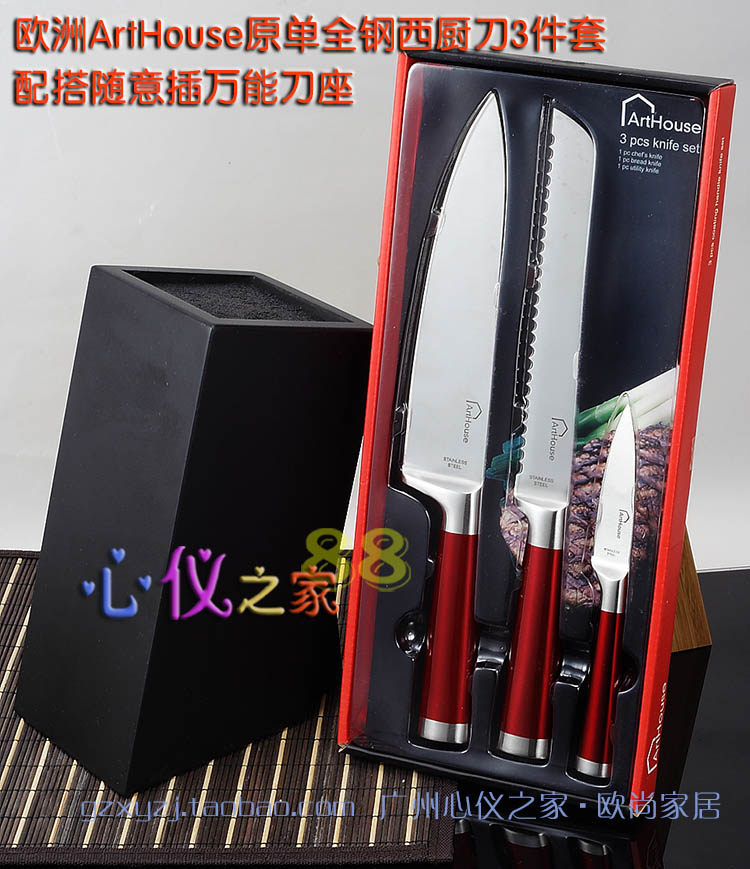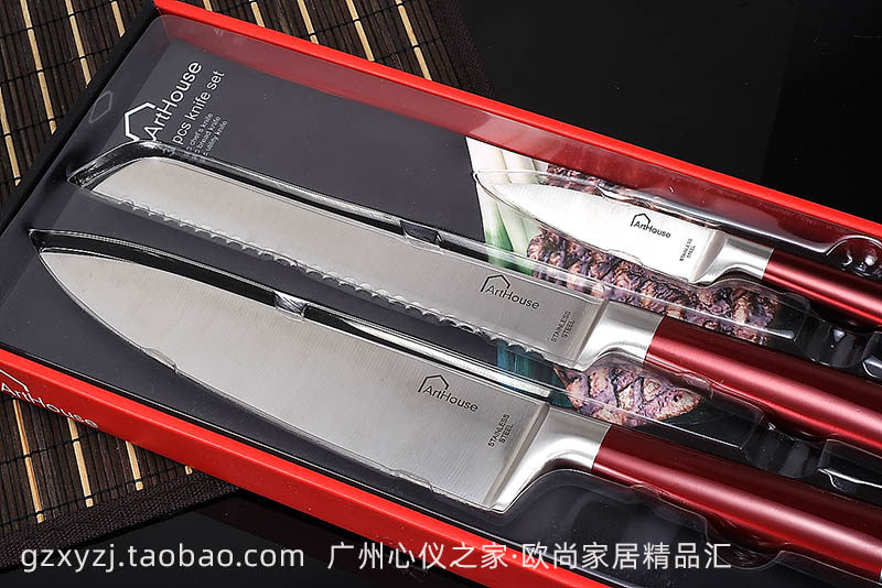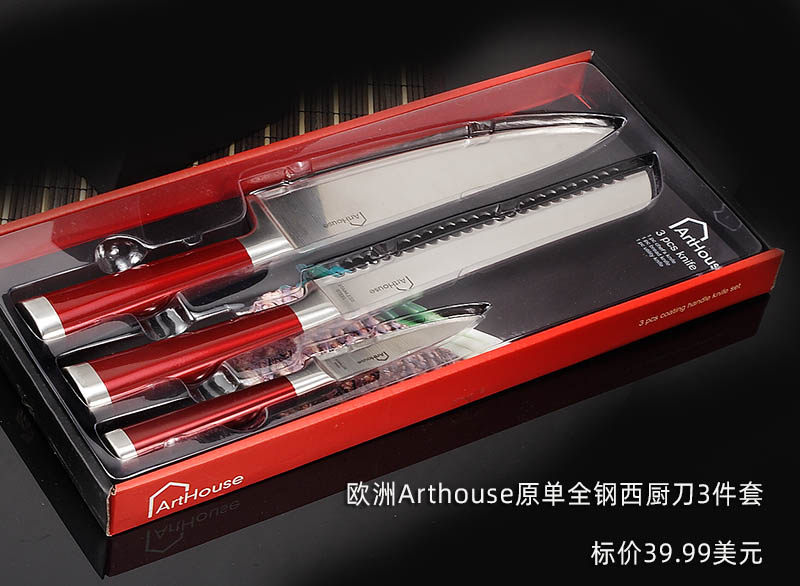 Красная стальная ручка из нержавеющей стали интегрированное западное кухонное нож 3 кусочки шеф -повара.