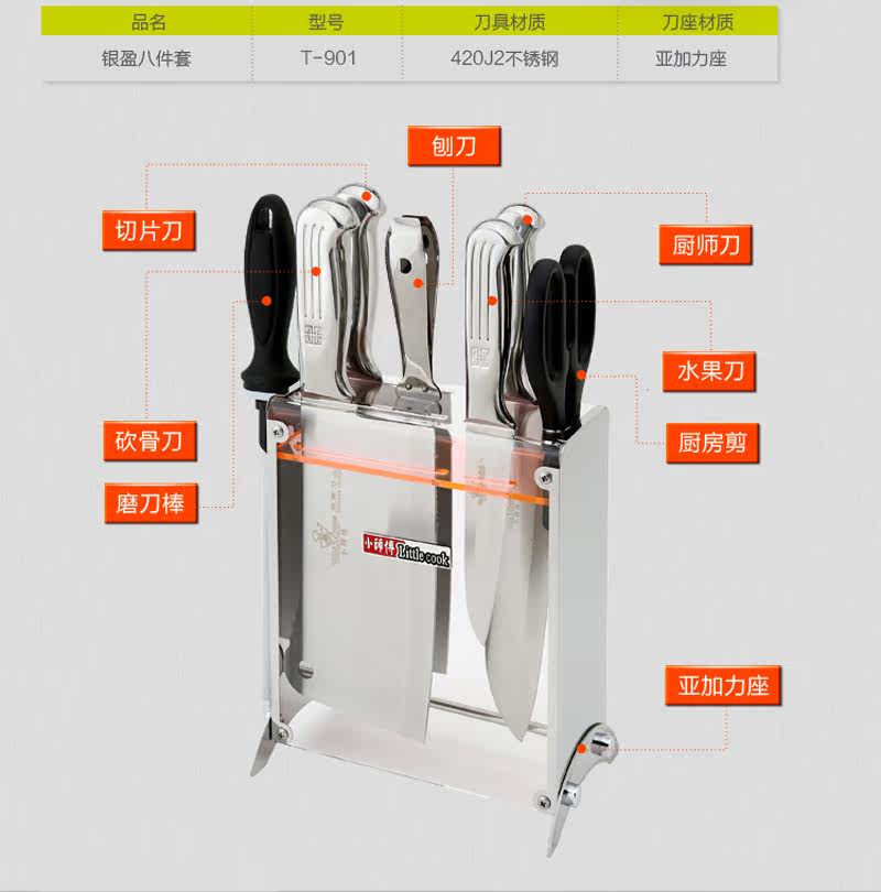 Мастер Янцзян Мастер кухня многосетанный нож Ининг Т-901 Восемь сет кухня кухня кухня кухня кухня кухонная кухня набор