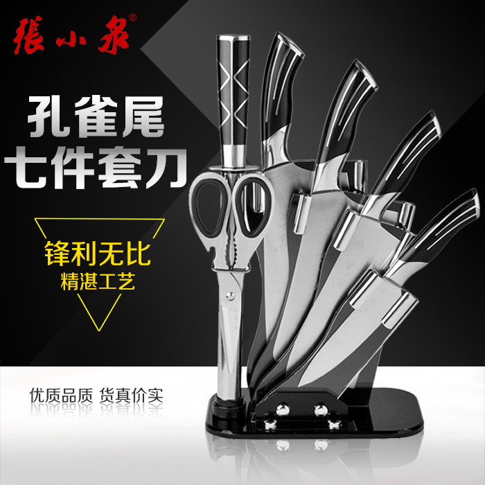 张小泉 Нож, набор кухонных ножей, павлиний хвост, бытовой набор из семи предметов, комбинированный держатель кухонного ножа с краями, нержавеющая сталь