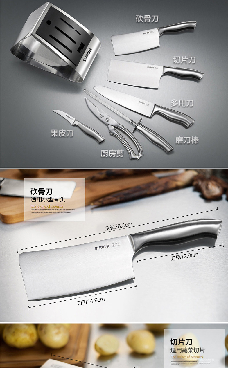 Супер -нержавеющая сталь кухонный нож набор комбинированная кухонная набор ножа лопата лопата Scoon Seven -Piece Fruit News T0914Q