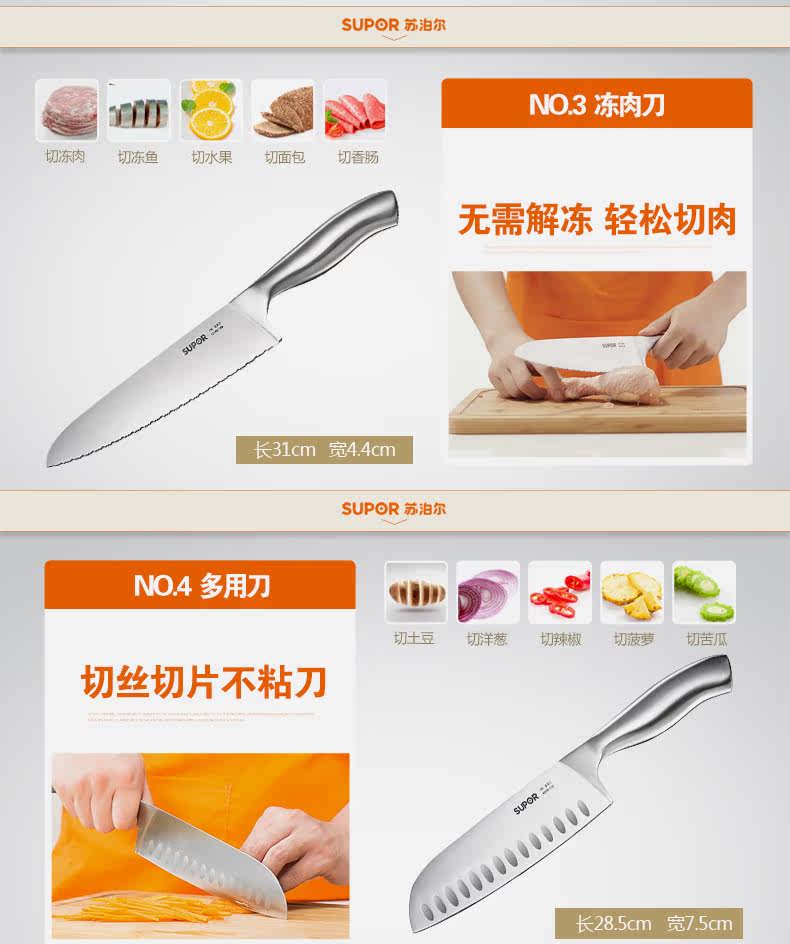 Supor Kitchen Knife Kitchen Atensils Set Kitchen Set Set Нож из нержавеющей стали Комбинированная нарезанная нарезанная нож.