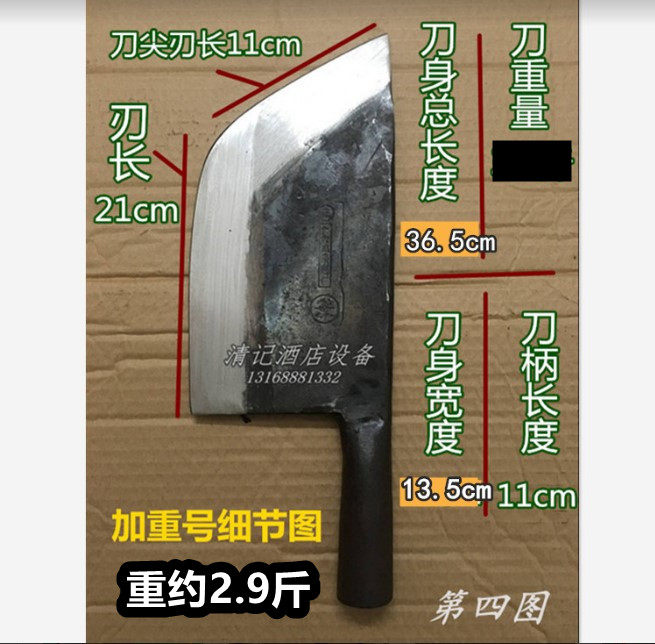 Личи Чуан разрезает костный нож и разрезает большой костный нож, утолщенный и усугублял мясник, продавая магазин свиной стойла, овца Большой костный нож Свиная костяная костяная костяная костя
