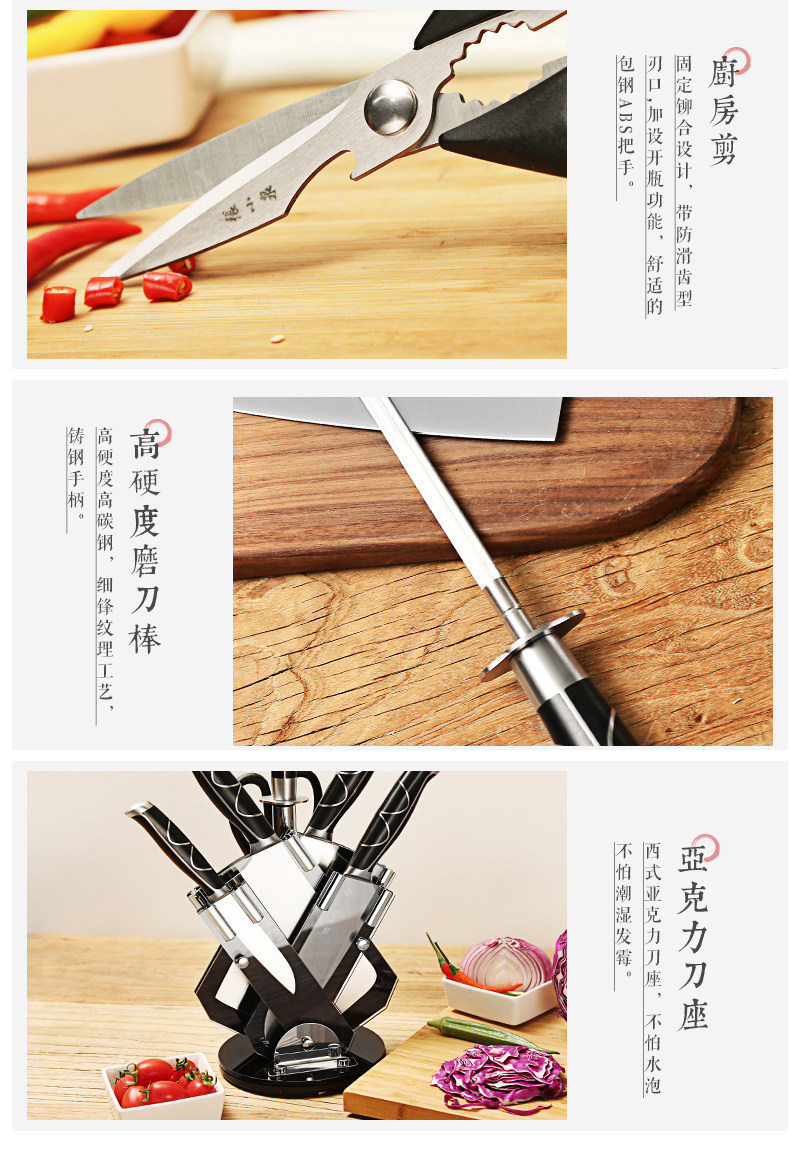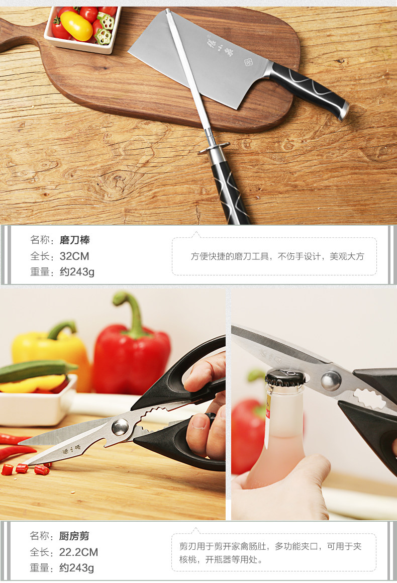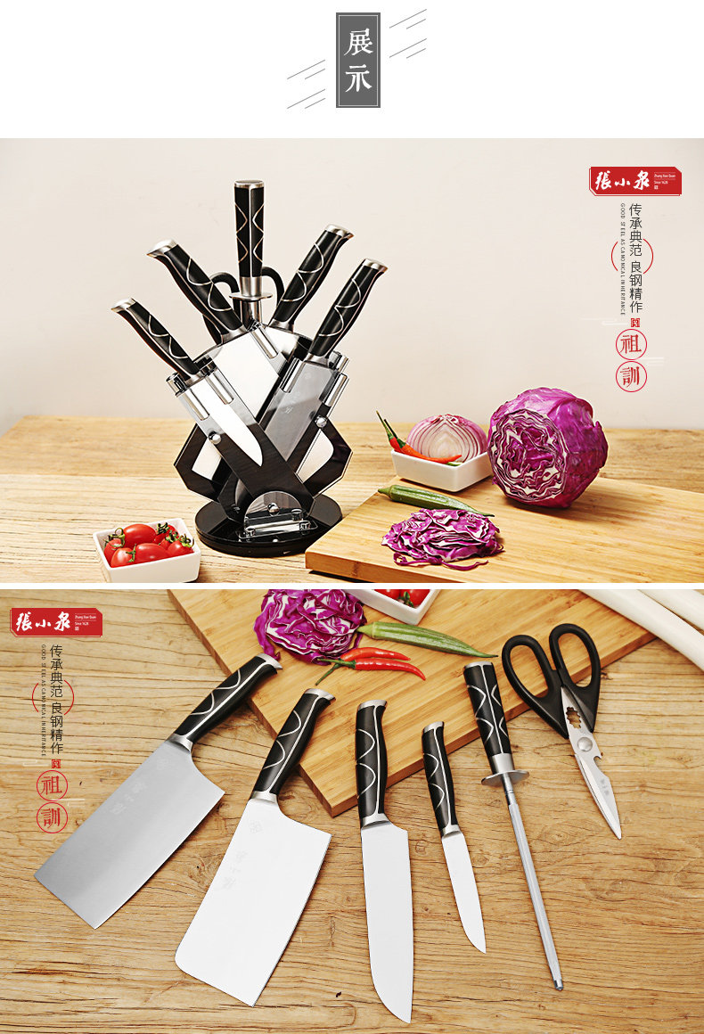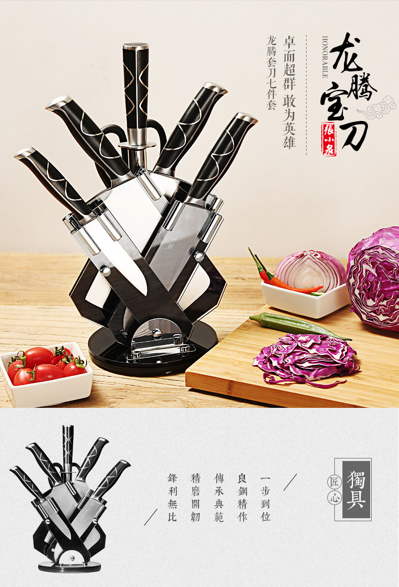 张小泉 Нож дракон Teng Seven -Piece из нержавеющей стали кухня кухня кухня кожа кожа D30160100 Кухня кухня