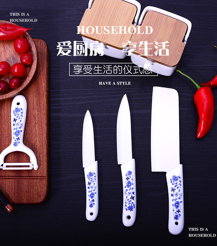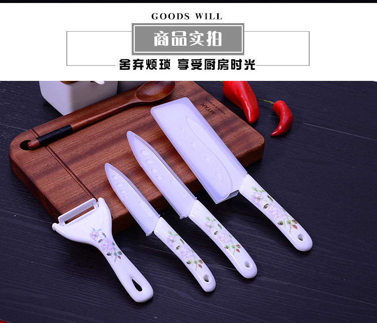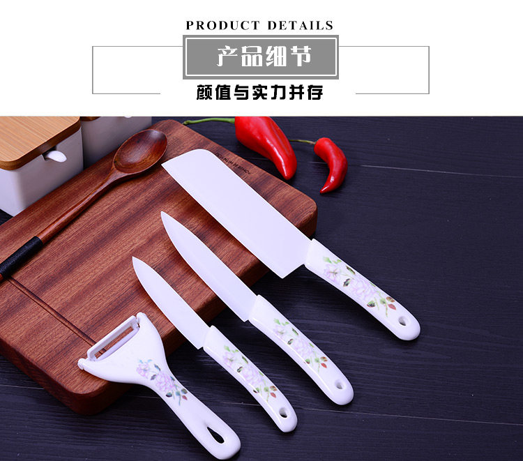 Набор керамических ножей, кухонный нож, кухонный набор из четырех предметов, бытовой циркониевый нож для резки мяса, чистки овощей, фруктовый нож, рекламный подарок
