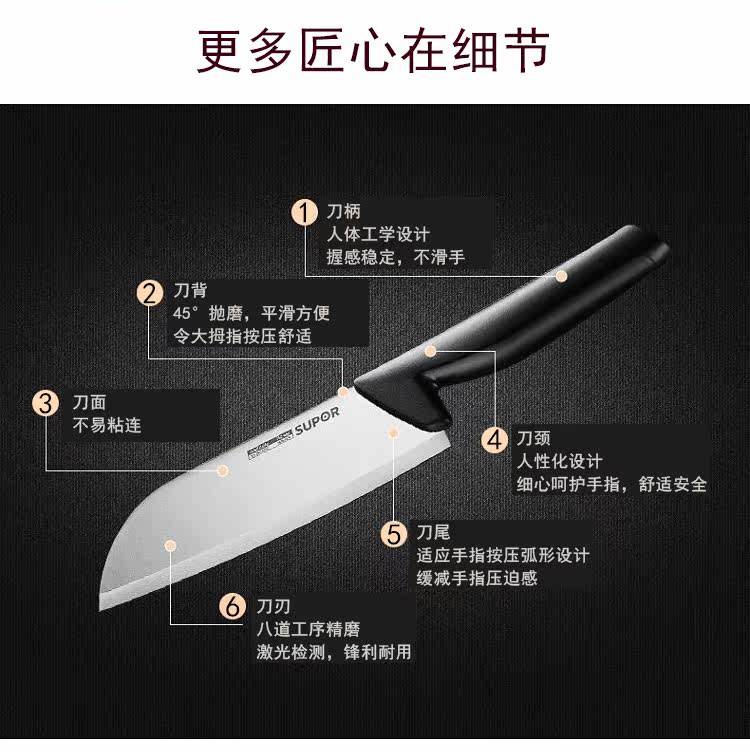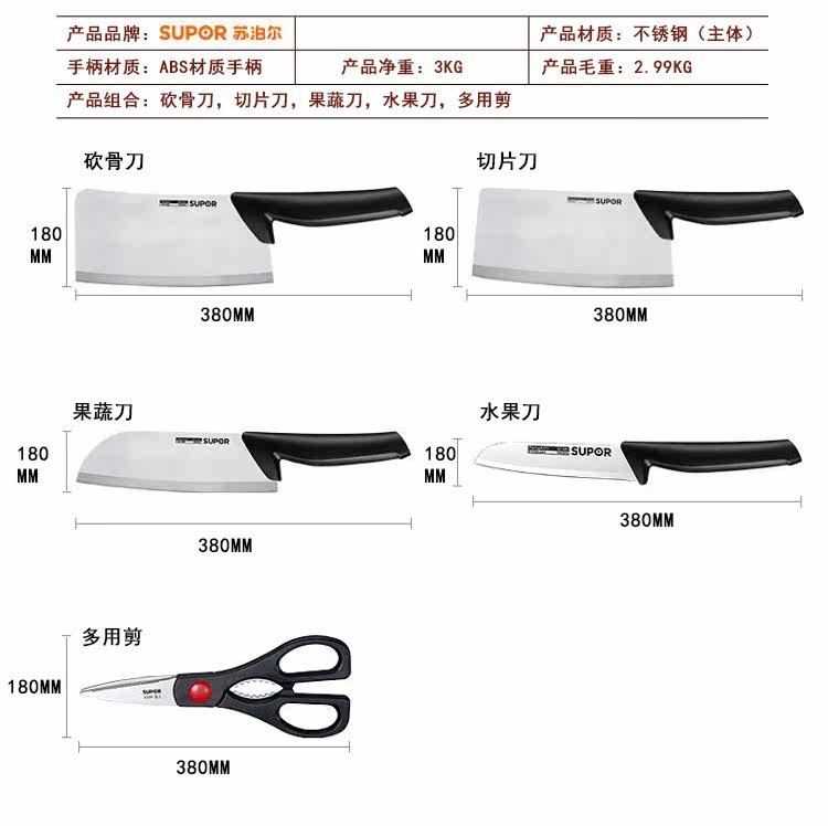 SUPOR SET SET SET HOVER KITKER NOWER SET NENSACELELEL SLICE НОЖИ, В основном нож фруктовый нож TK1520Q