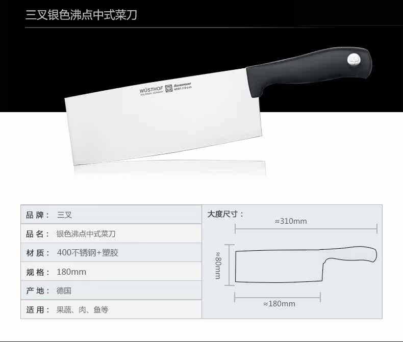 Немецкий тройной тройной серебряный кипящий серия серии двух групп китайского кухонного ножа измельчающие нож из нержавеющей стали кухонный нож