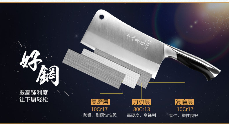 十八子作 Кухонный набор кухня Трех -слоя композитного стального кухонного ножа Полный набор домашних ножей Янццзян подлинный нож