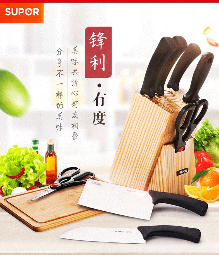 Supor Kitchen Kitchen Tools, полный набор овощных ножей, нарезанный нож, комбинация фруктовых нож, домашнее набор ножей из нержавеющей стали