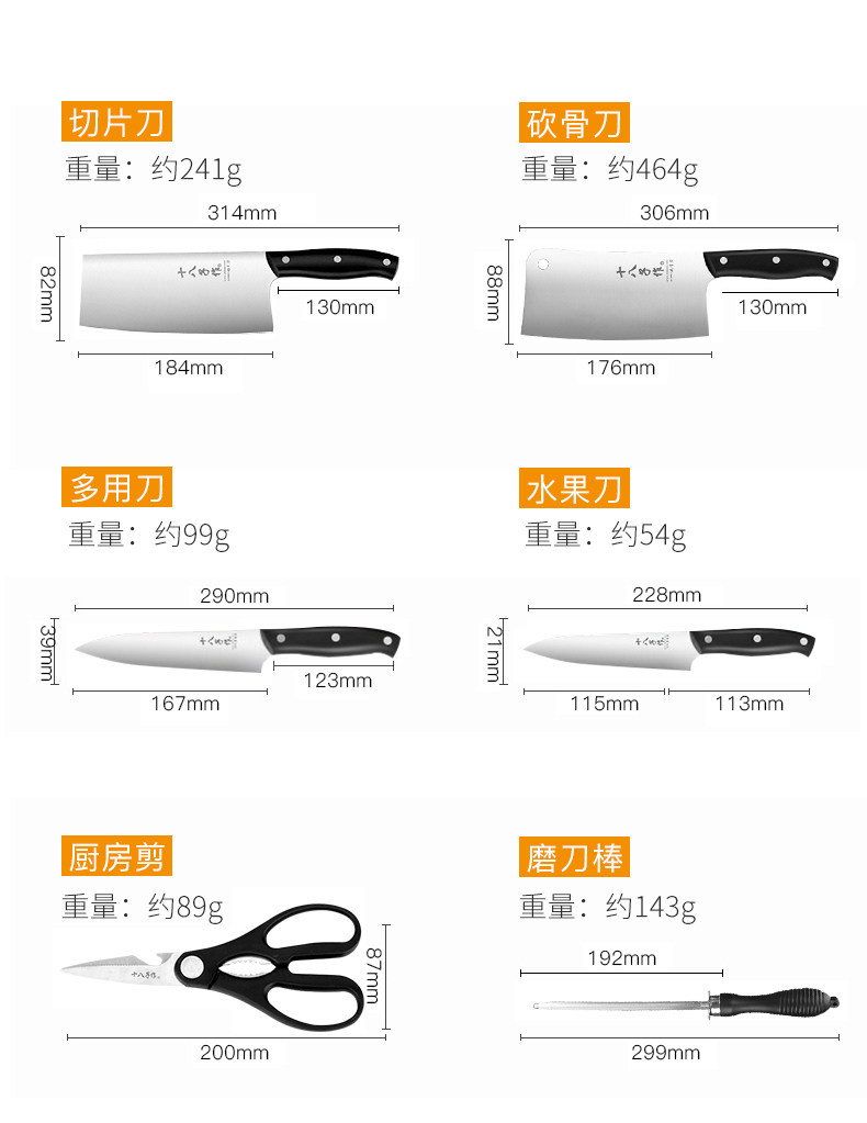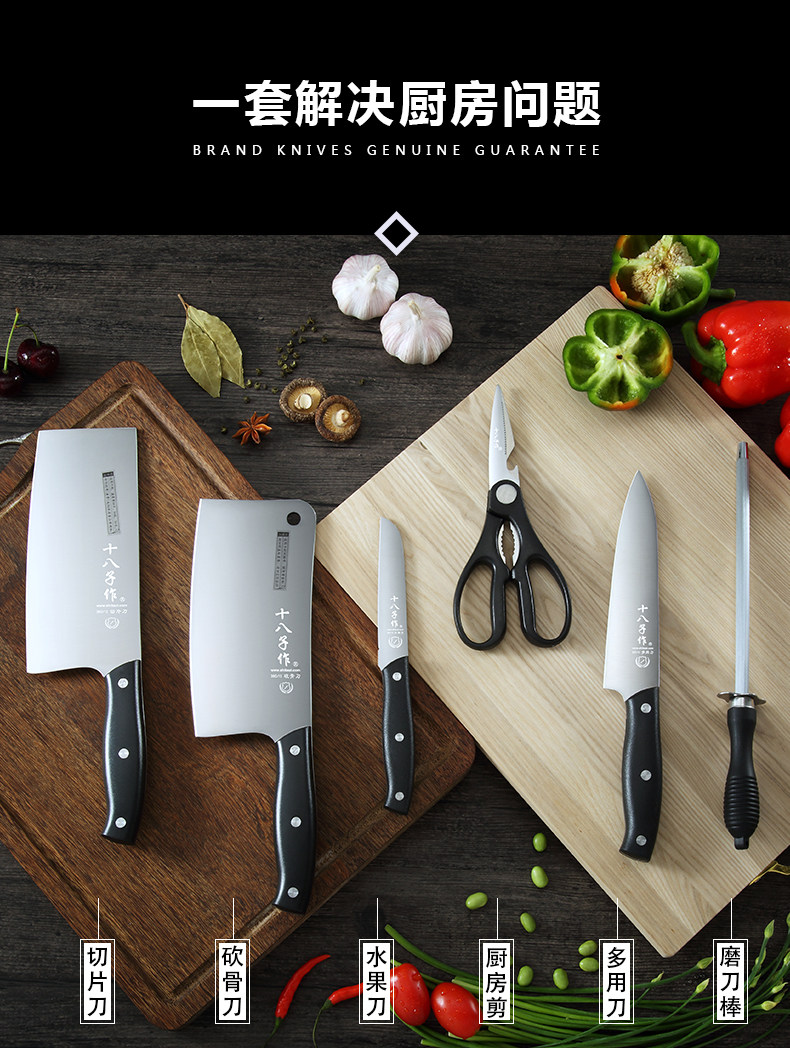 十八子作 Кухня кухонная кухня Полный комплект домашнего кухонного ножа из нержавеющей стали нарезанный кухонный нож