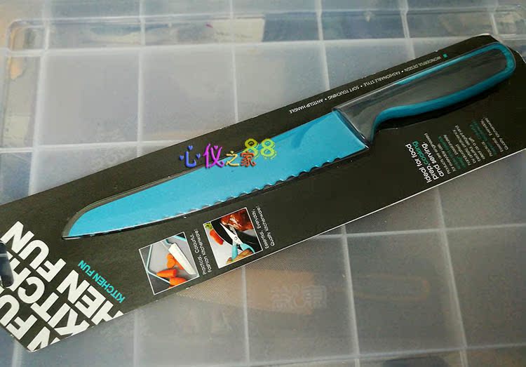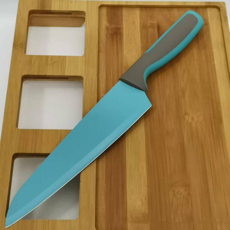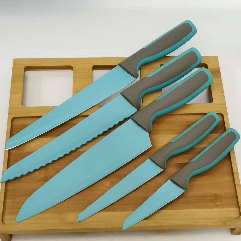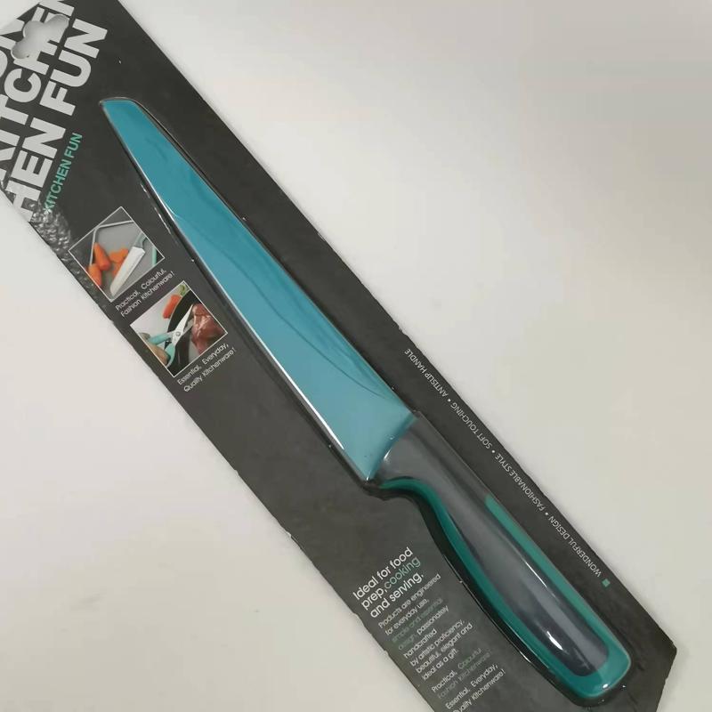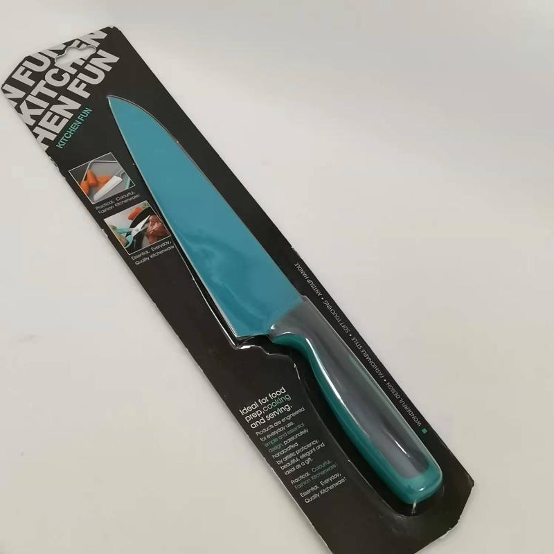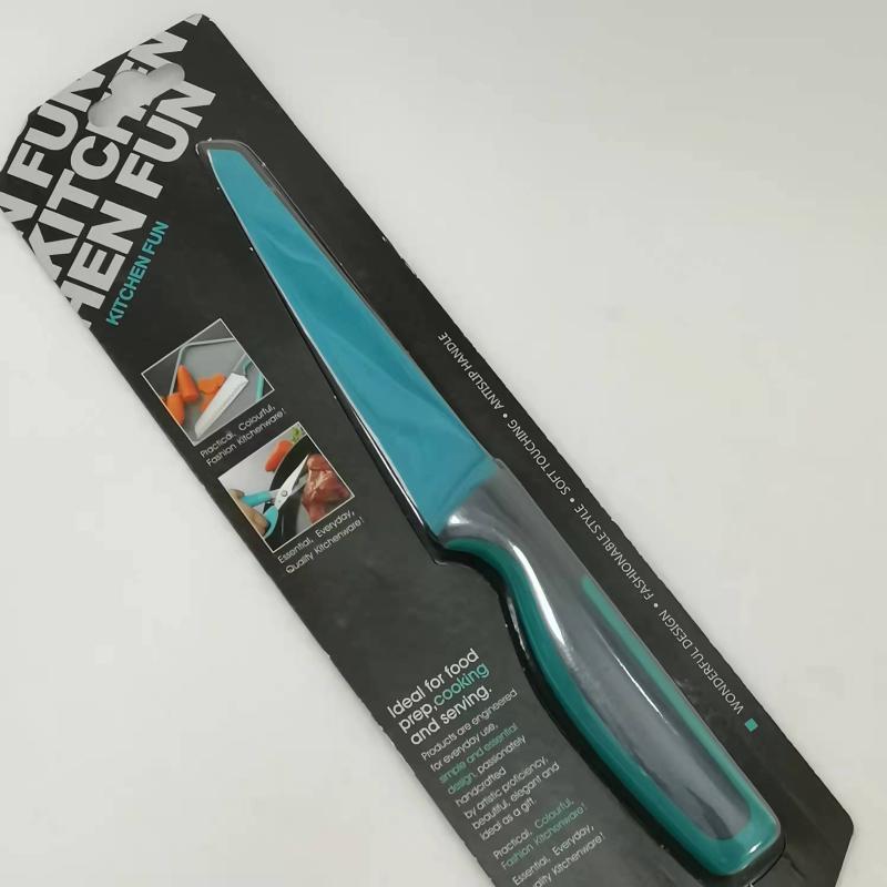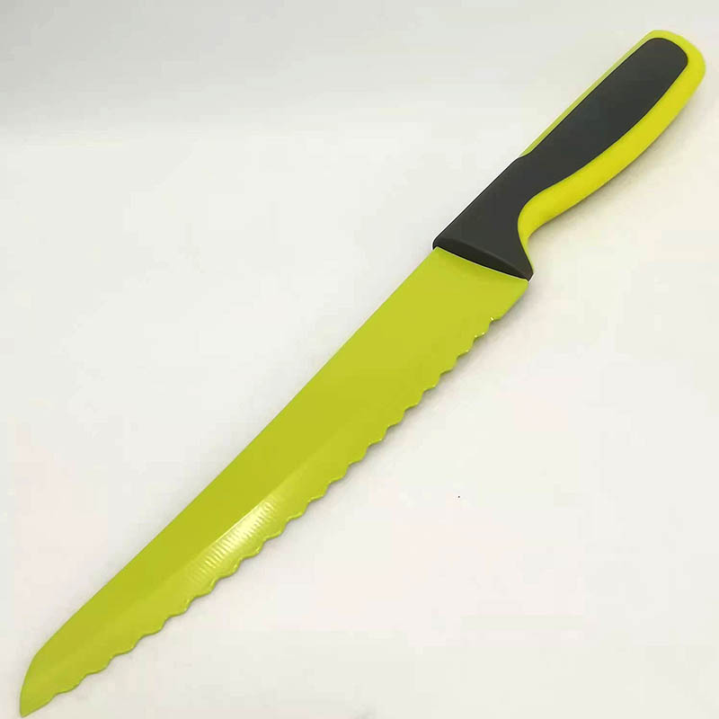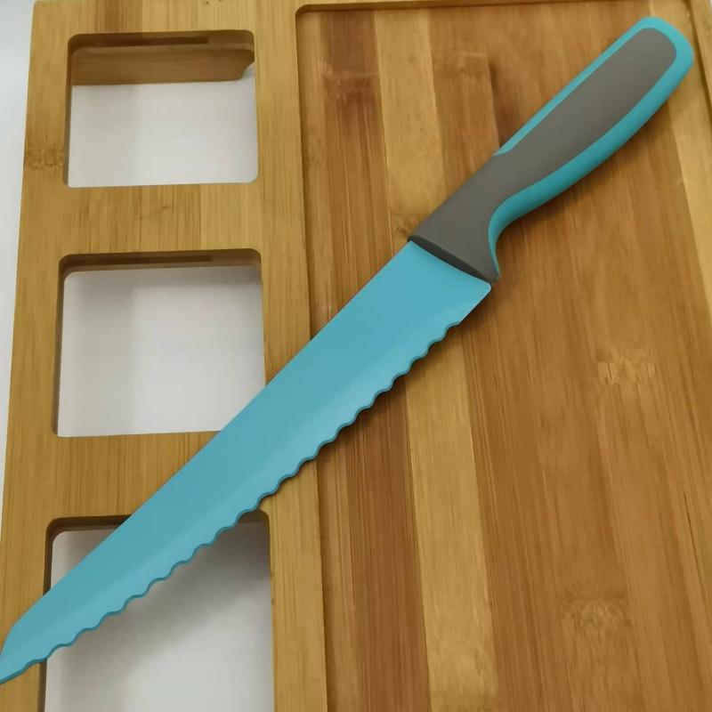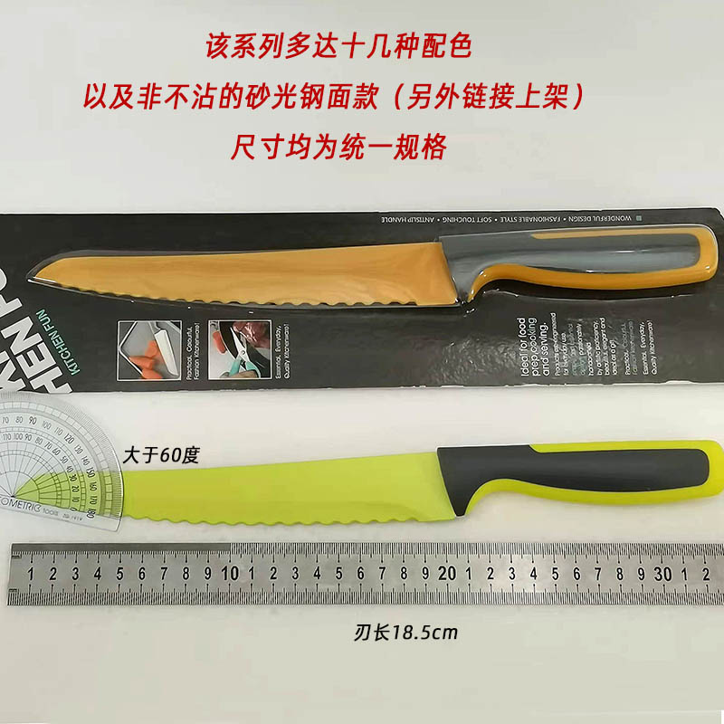 Цветная антипригарная поверхность из пищевого тефлона, лезвие из открытой стали (кроме ножа для хлеба)