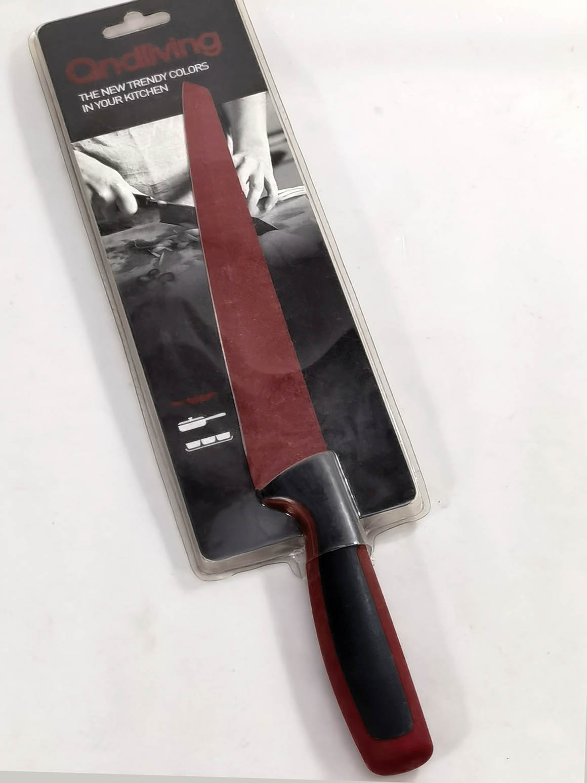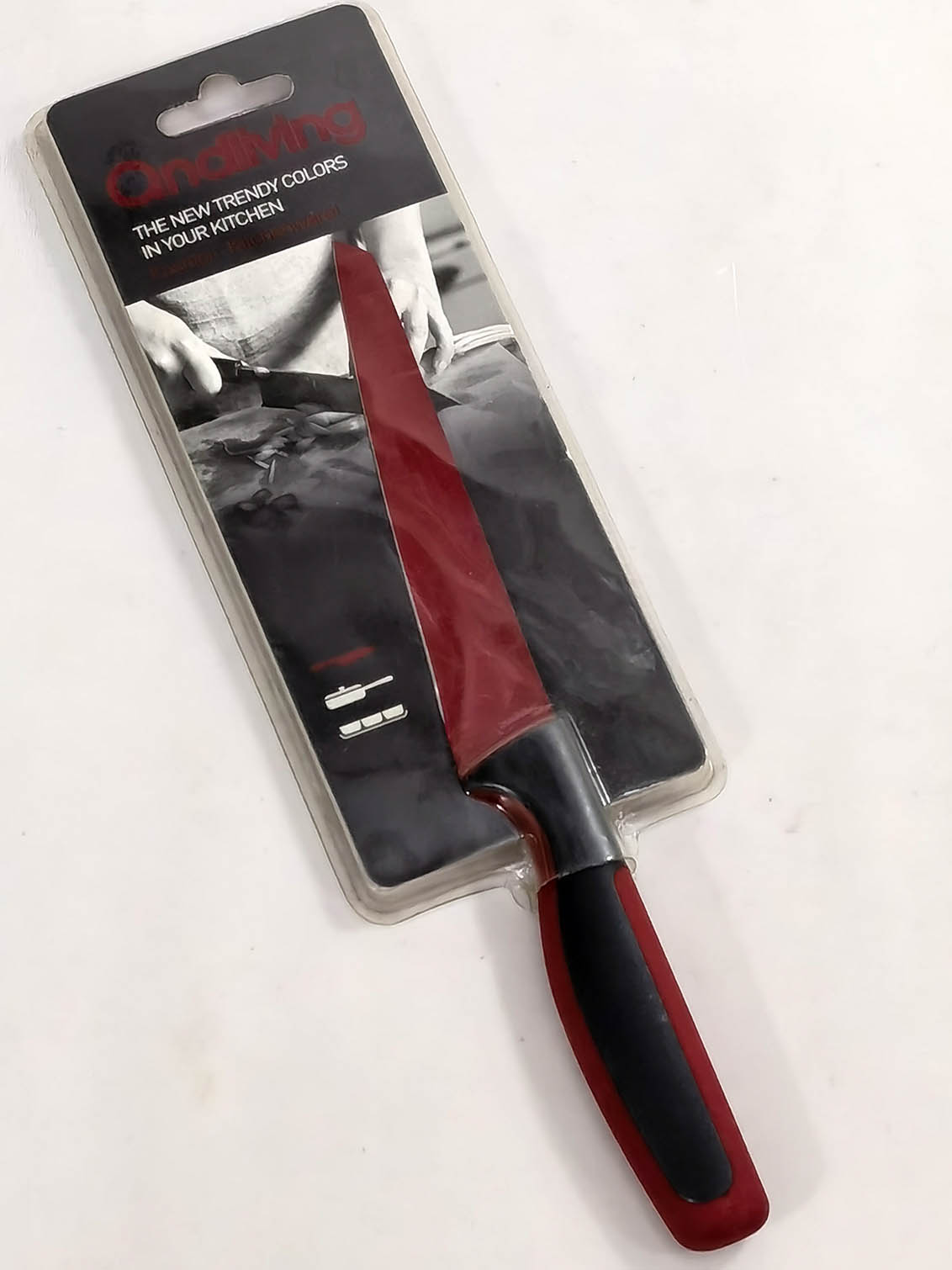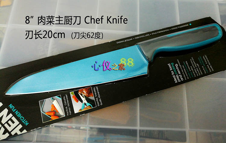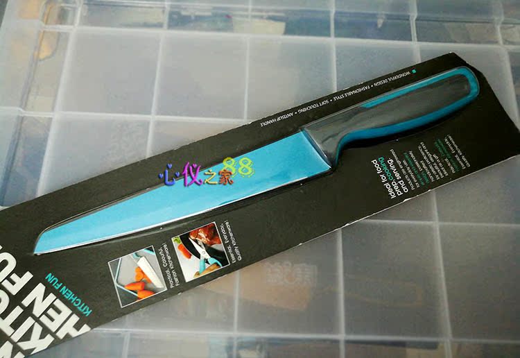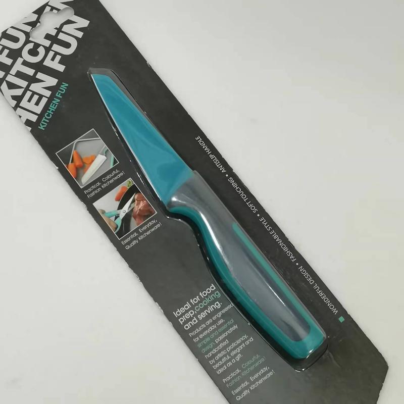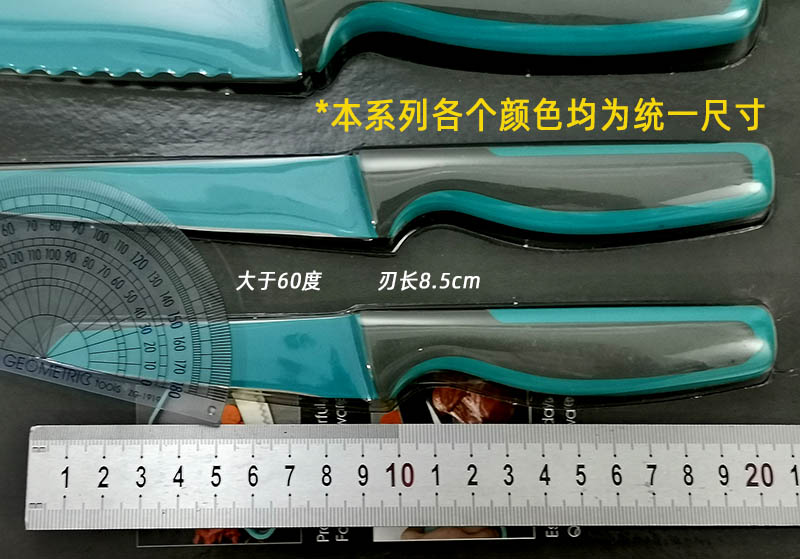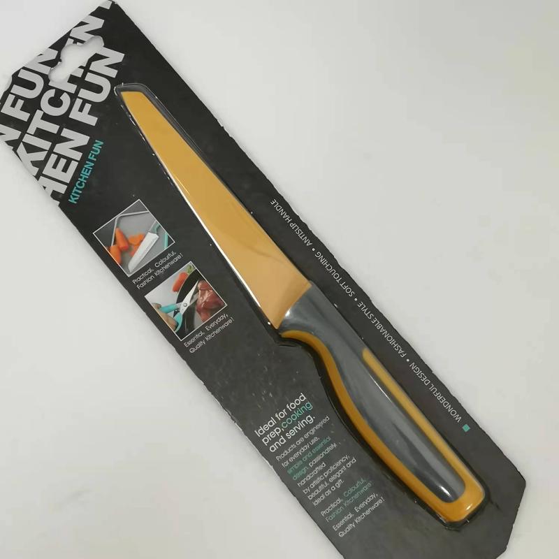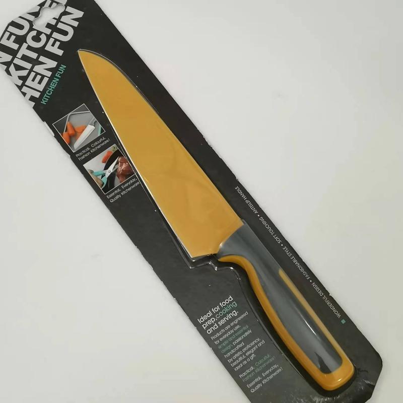 Цветная антипригарная поверхность из пищевого тефлона, лезвие из открытой стали (кроме ножа для хлеба)