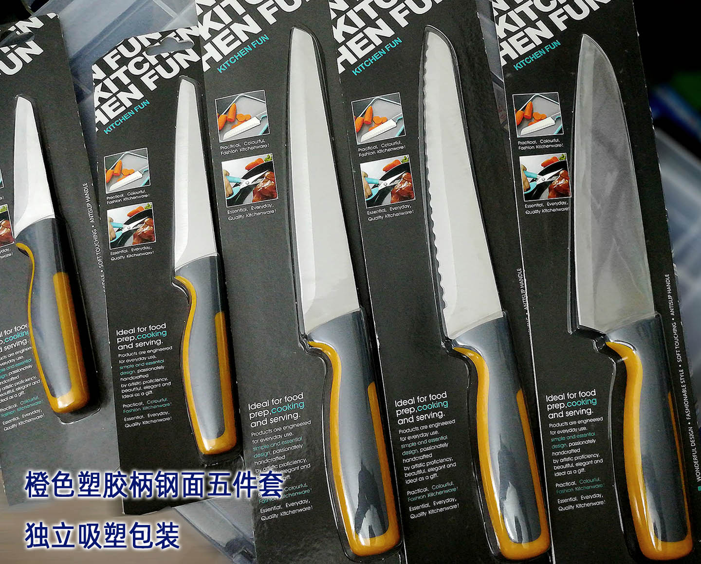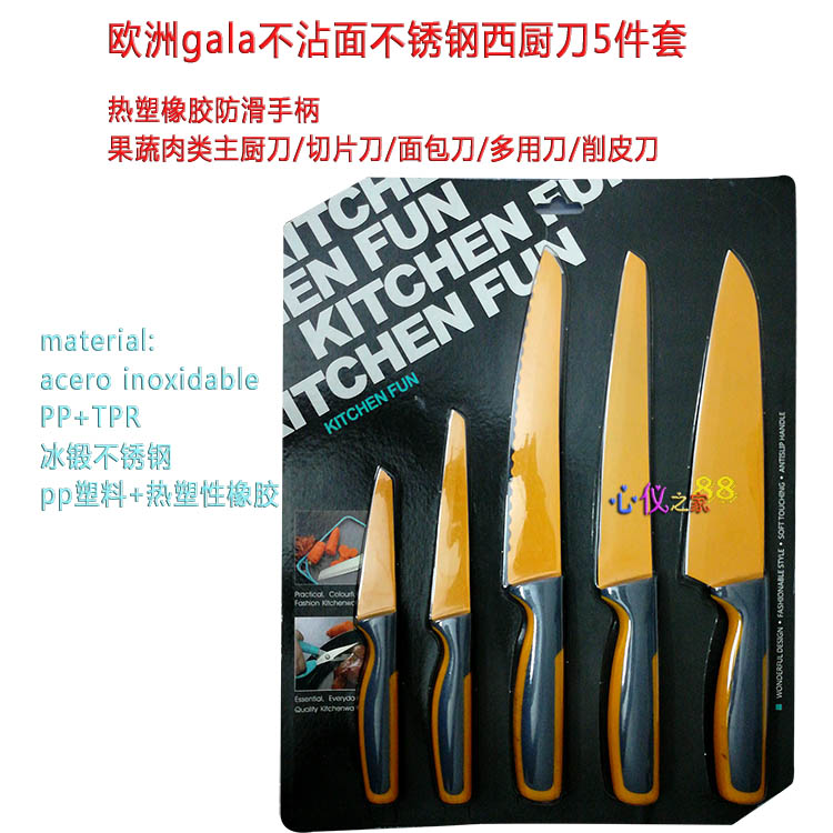 ПП пластик + термопластичная резина TPR, противоскользящаяПластиковая ручкаНож шеф-повара, нож для нарезки, нож для сэндвич-хлеба, 5-дюймовый универсальный нож, 3,5-дюймовый нож для чистки фруктов и овощей.
