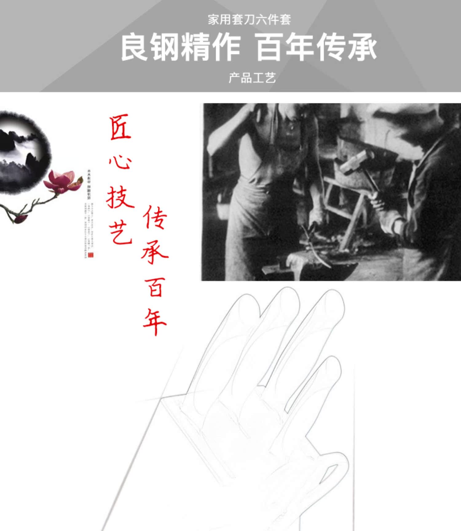 张小泉 Нож, комплект из нержавеющей стали