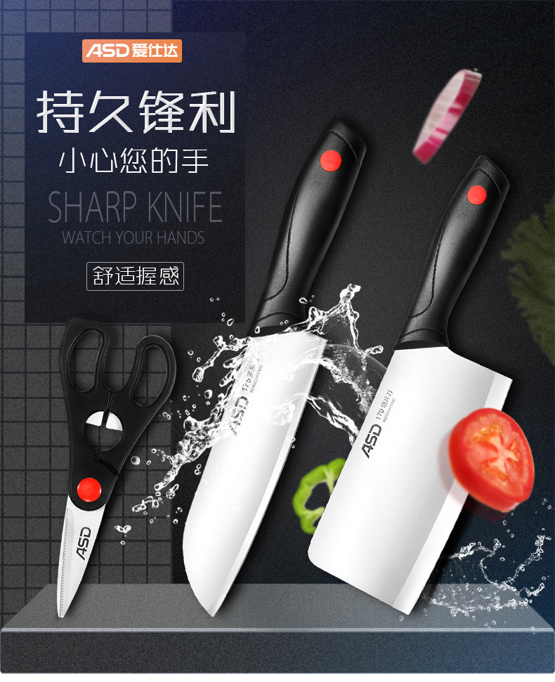 Aishida Kitchen Kitchen Set Three -Piece Set Home Nearnabless Slice Slice Kitchen Step Kitchen Kitchen Knife Steel Kitzer