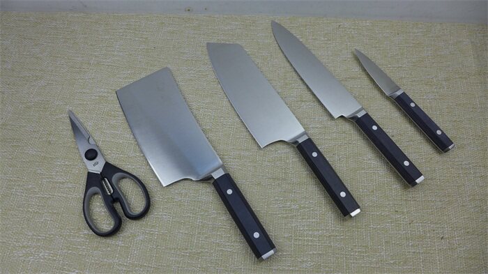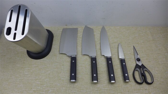 Этот набор ножей является хорошим продуктом, настроенным на покупку, клиент разрушает заказ, а завод обрабатывается. Это не то, что я сказал. Умеренный, нарезанная курица и утки достаточно, а дизайн очень разумный. Небольшой фруктовый нож не может быть полностью полон в сиденье ножа, немного обнажая.Этот набор ножей не упакован, за исключением ножного сиденья и ножниц.