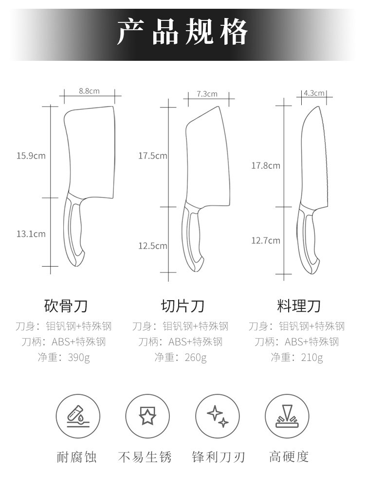 Kinmen Super Sharp Kitchen Knife Commine Set Setemving Home-Peece Sharp Kitchen Knife Set Cannonball Стальный молибден ванадий стальная кость резка