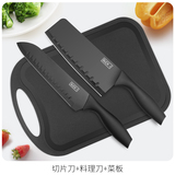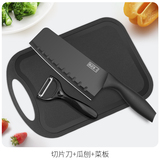 Кухонный костюм для ножа сочетает в себе кухонный нож и режущую доску с двумя семействами с надписью с надписью и фруктовым ножом.
