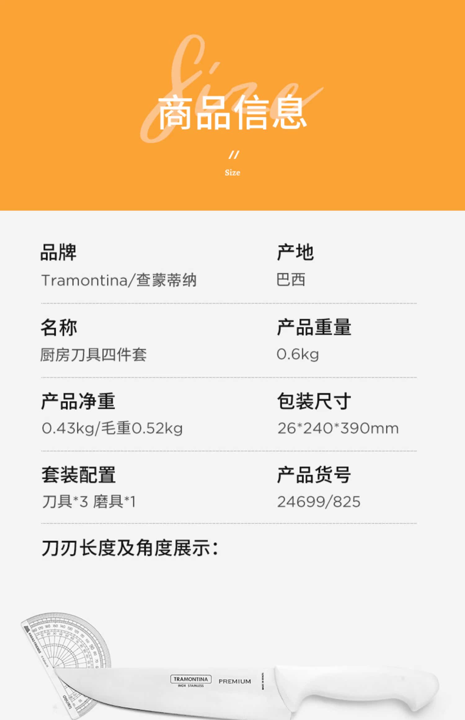 Комплект, импортный нож из нержавеющей стали, 4 предмета
