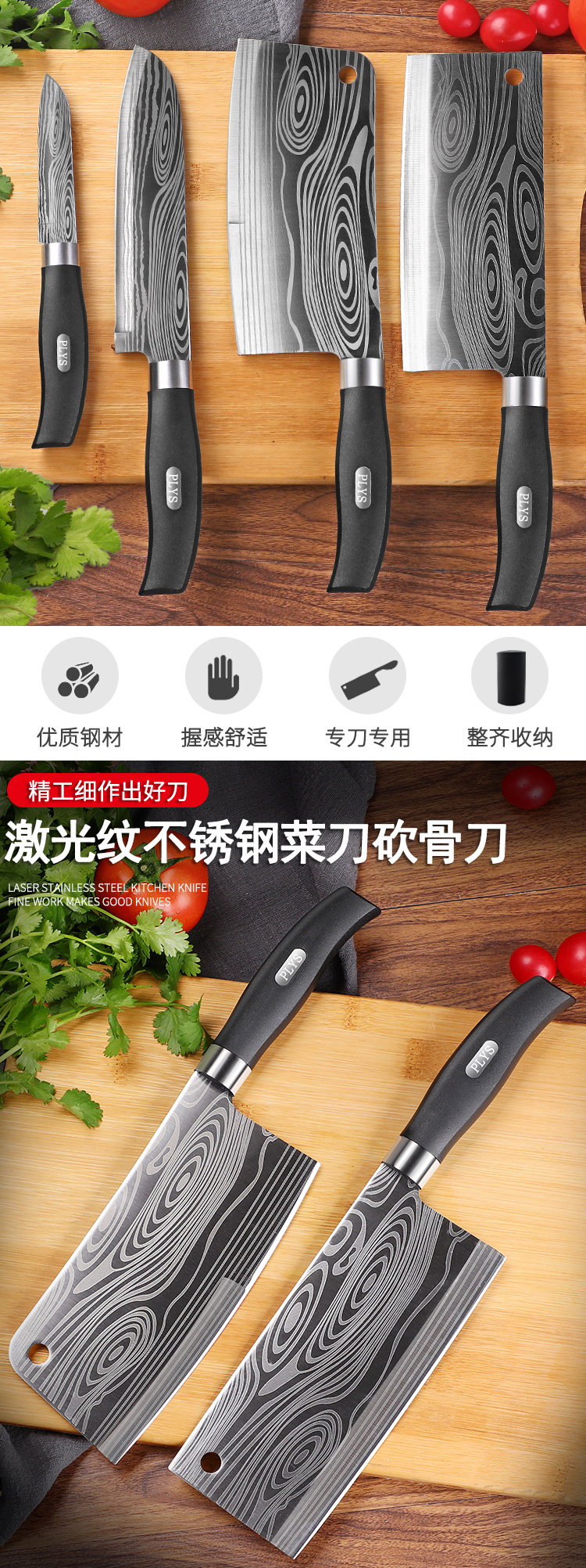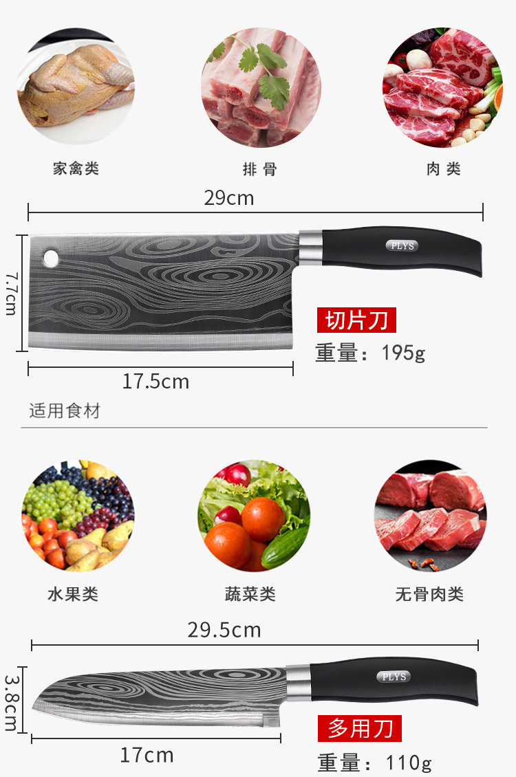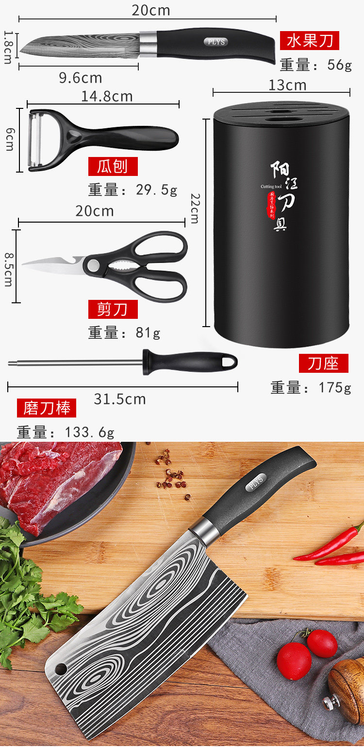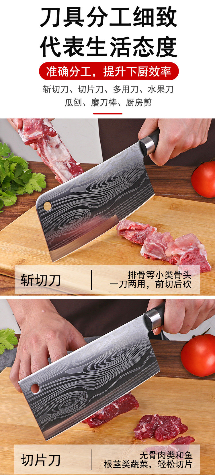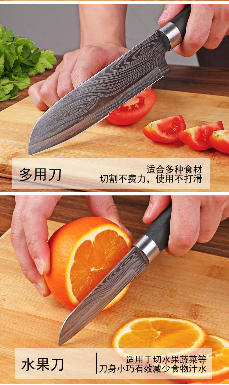 Кожаные кухонные ножи Damascus Установки с острыми овощами, нож янцзян, шеф -повар из нержавеющей стали