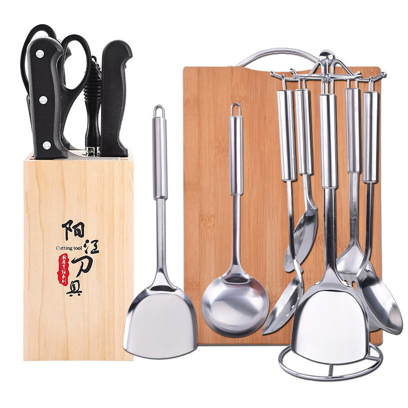 Янцзян из нержавеющей стали кухня кухня кухня кухня кухня кухня кухонная кухонная кастрюль Споры -Полностью полный набор домашнего -подрезанный костный нож нож и режущая доска