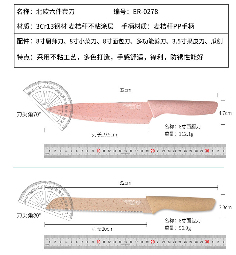 Экспорт стандартный виллар разрешенного Everrid Color Wheat соломенная из нержавеющая сталь 6 -купюрный нож через то же самое