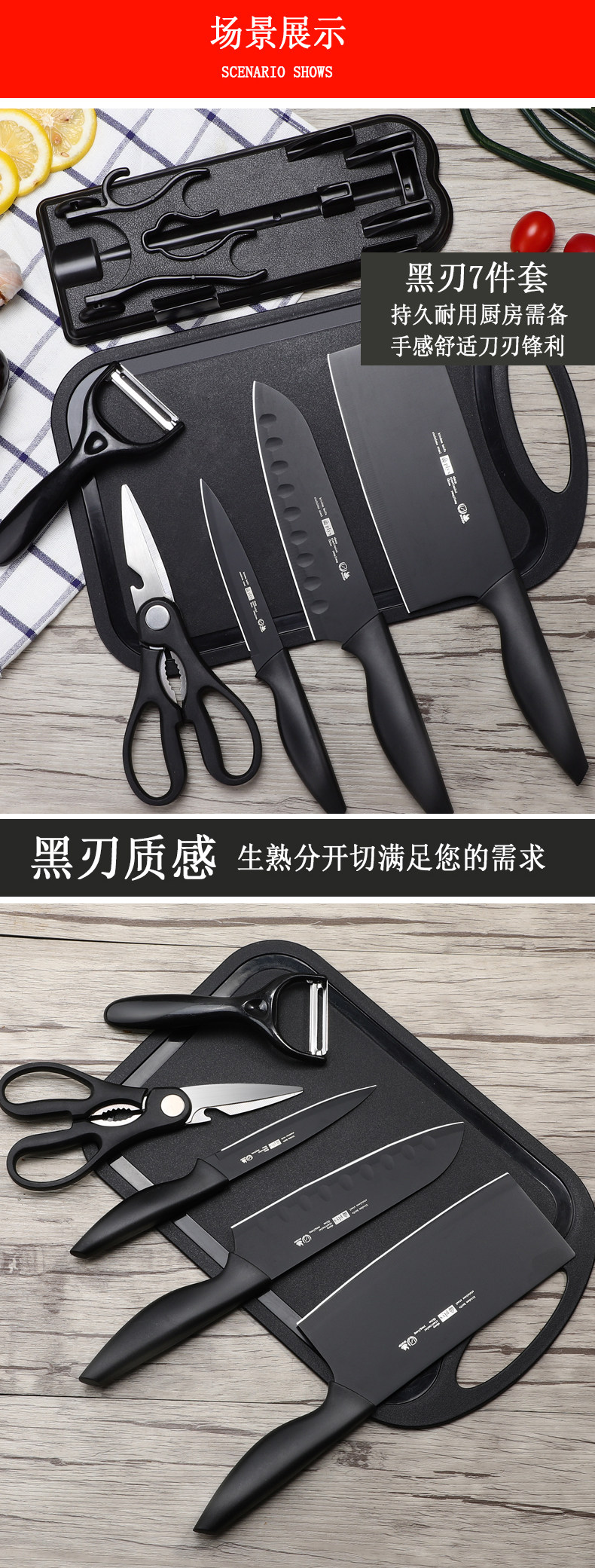 Кухонный кухонный кухонный нож Комбинированный кухонный нож и режущая доска, все фильмы Daoyangjiang Домохозяйства Супер быстро и острый черный нож
