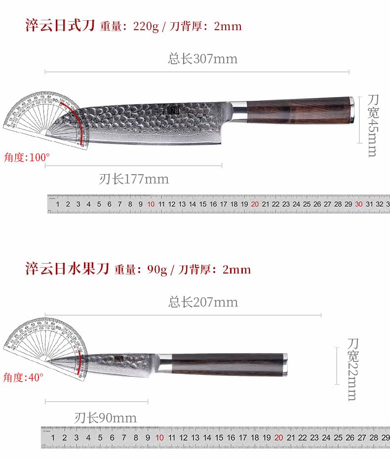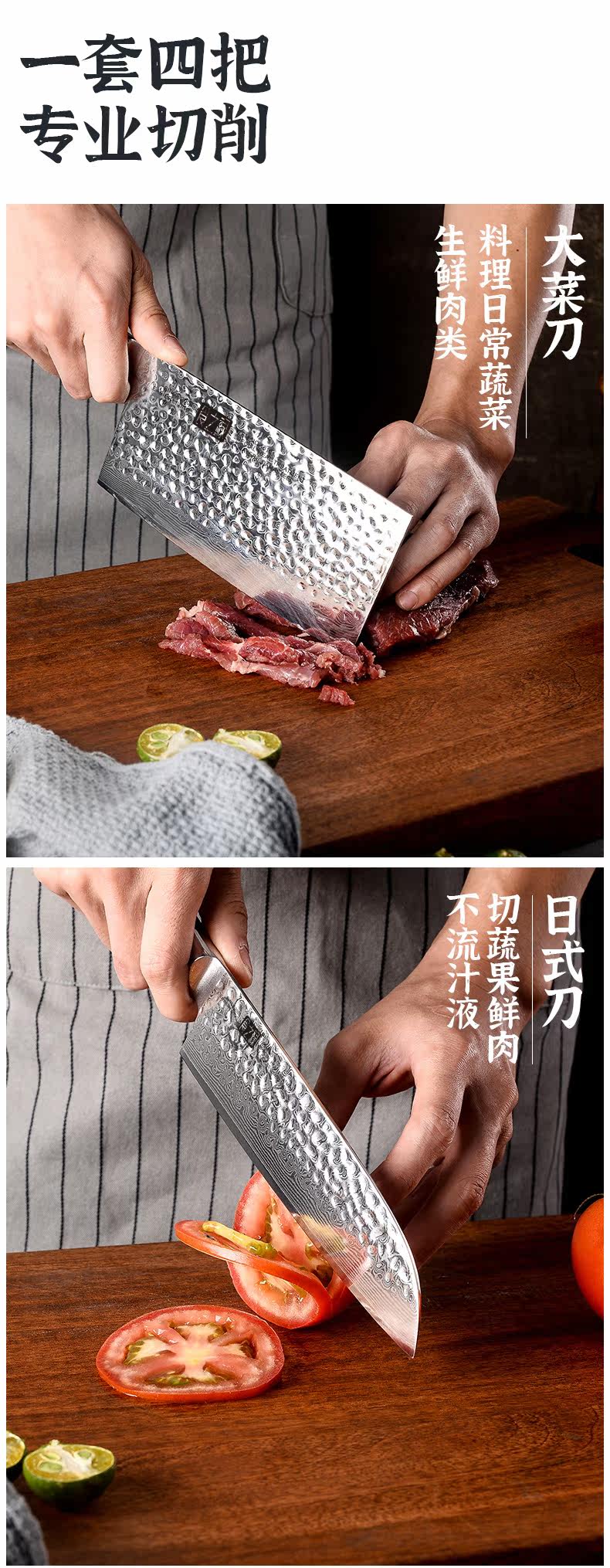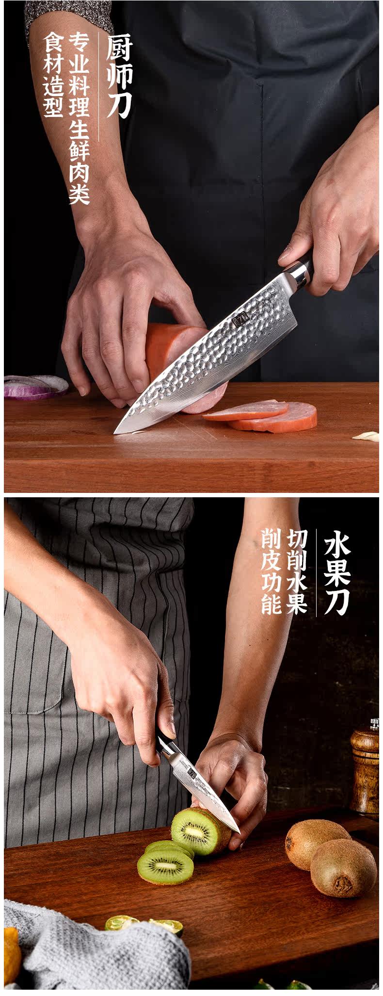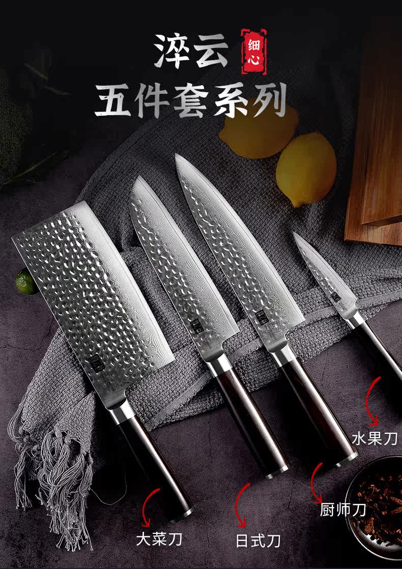 Узор молотка Damascus Стальной кухонный нож набор нарезанного ножа японский шеф -повар кухонный фруктовый нож домик кухонный нож Комбинация