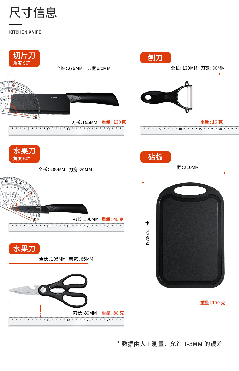 Черная стальная режущая кухня инструмент кухня инструмент кухонная доска черная стальная ножа фруктовый нож.