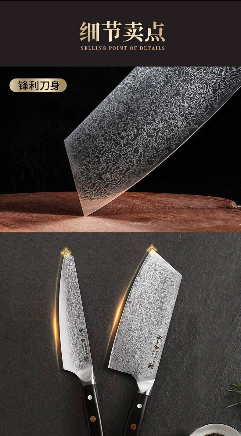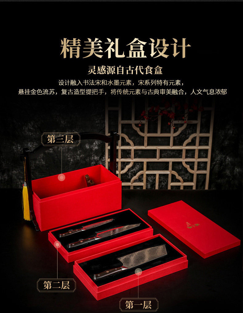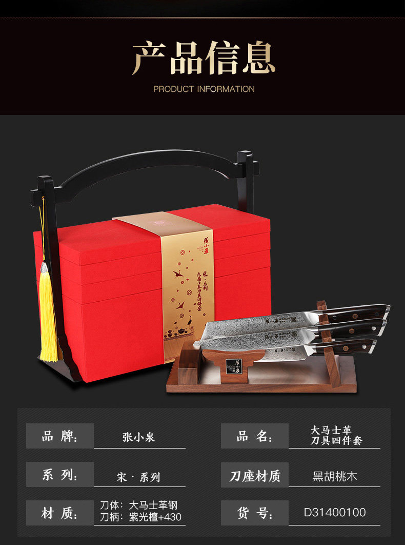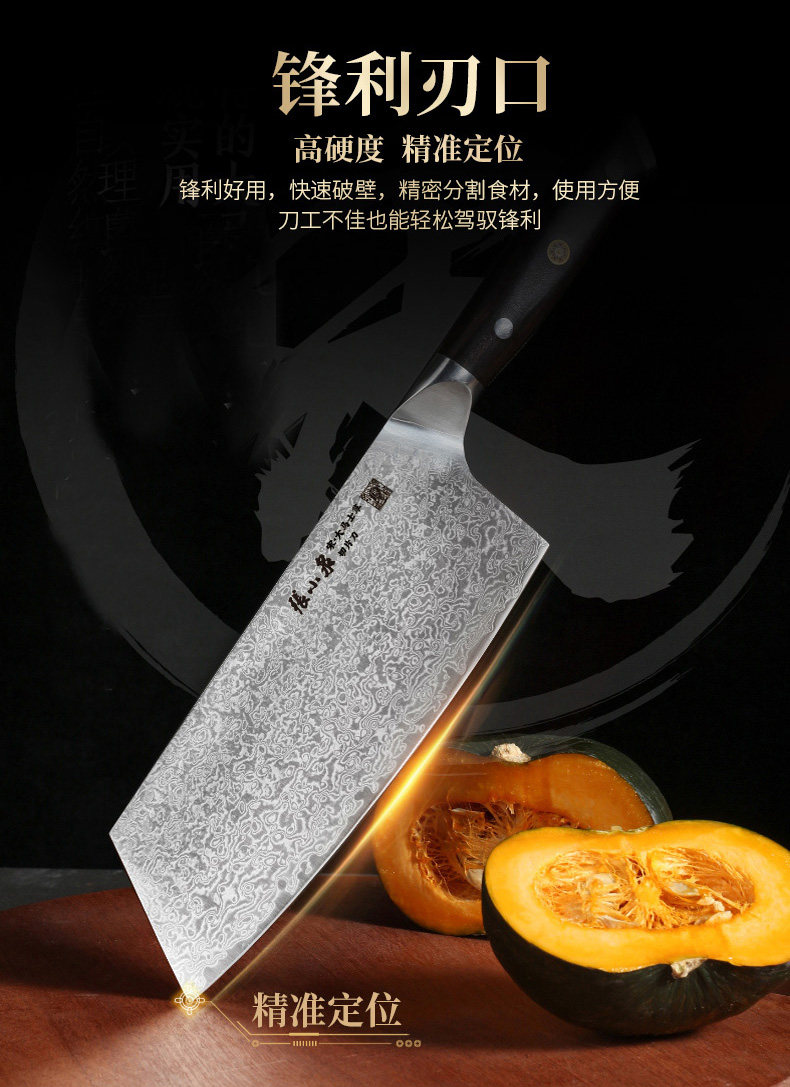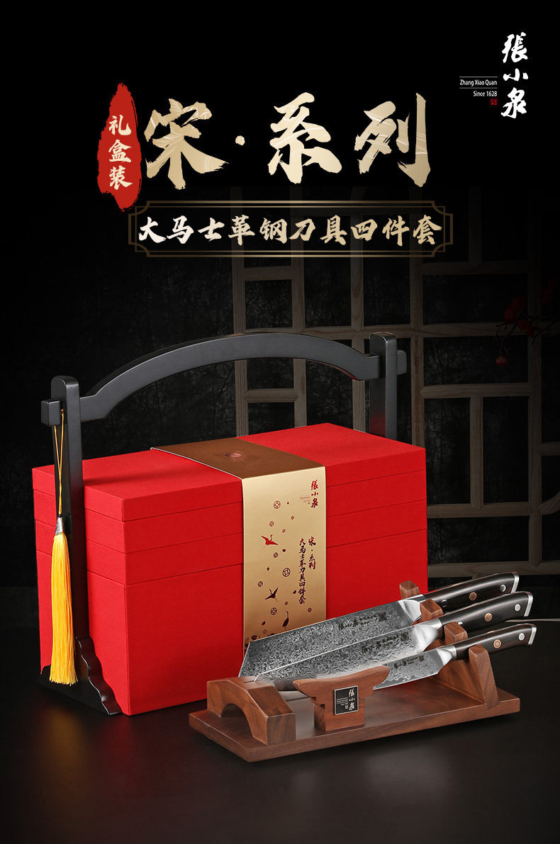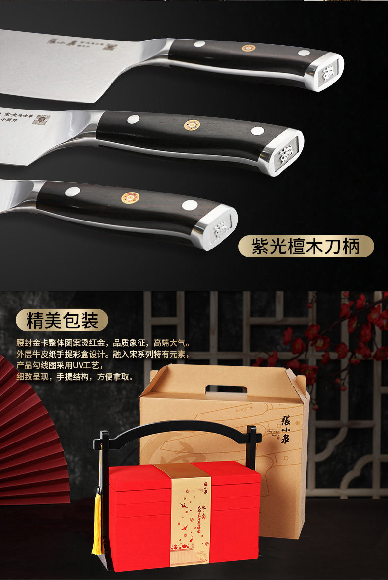 张小泉 Damascus Steel Set Kitchen Kitchen Kitchen Kitchen Mabring Shef Chef Special Gift Box Set Нож