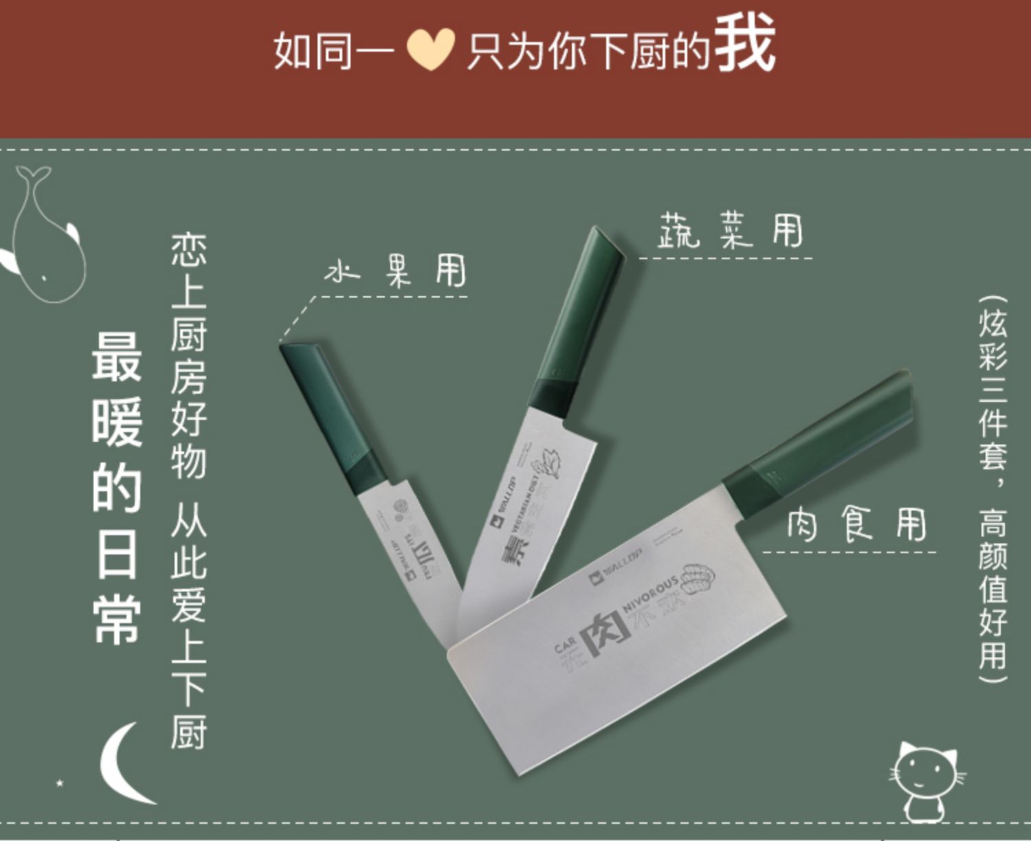 Уолп красочный кухонный нож House Kitchen News Set Special Special Sharp Sharpenlable Steel Slice и мясо нож
