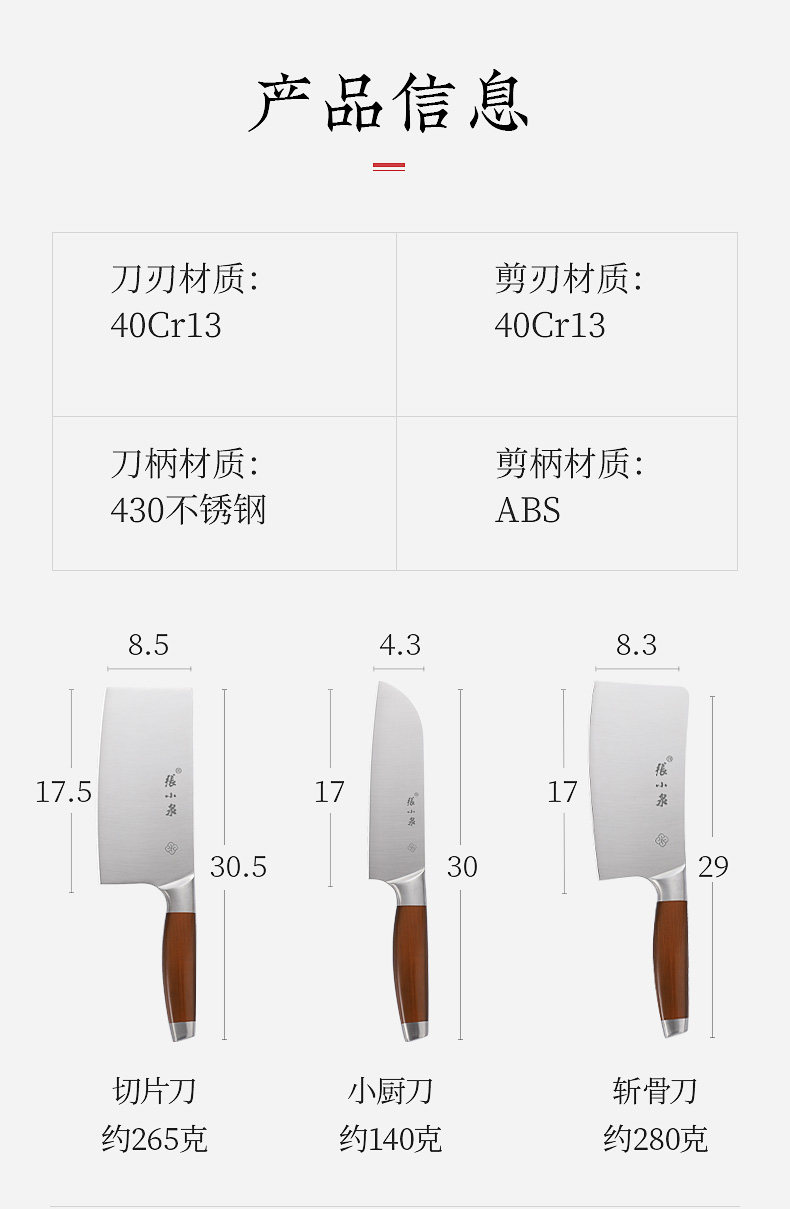 张小泉 Высококачественный нож, комплект из нержавеющей стали, 6 шт