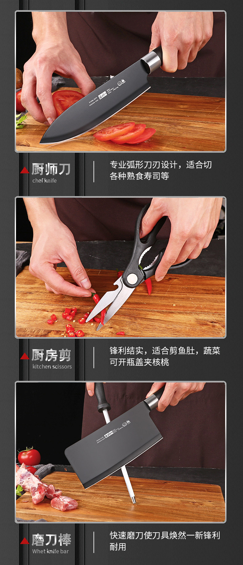 Кухонный нож, набор бытовых кухонных ножей, комбинированный специальный нож для нарезки шеф-повара, сверхбыстрый острый нож для измельчения костей, разделочная доска, кухонная утварь