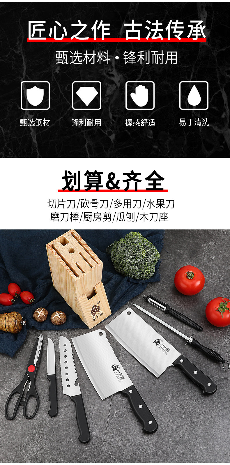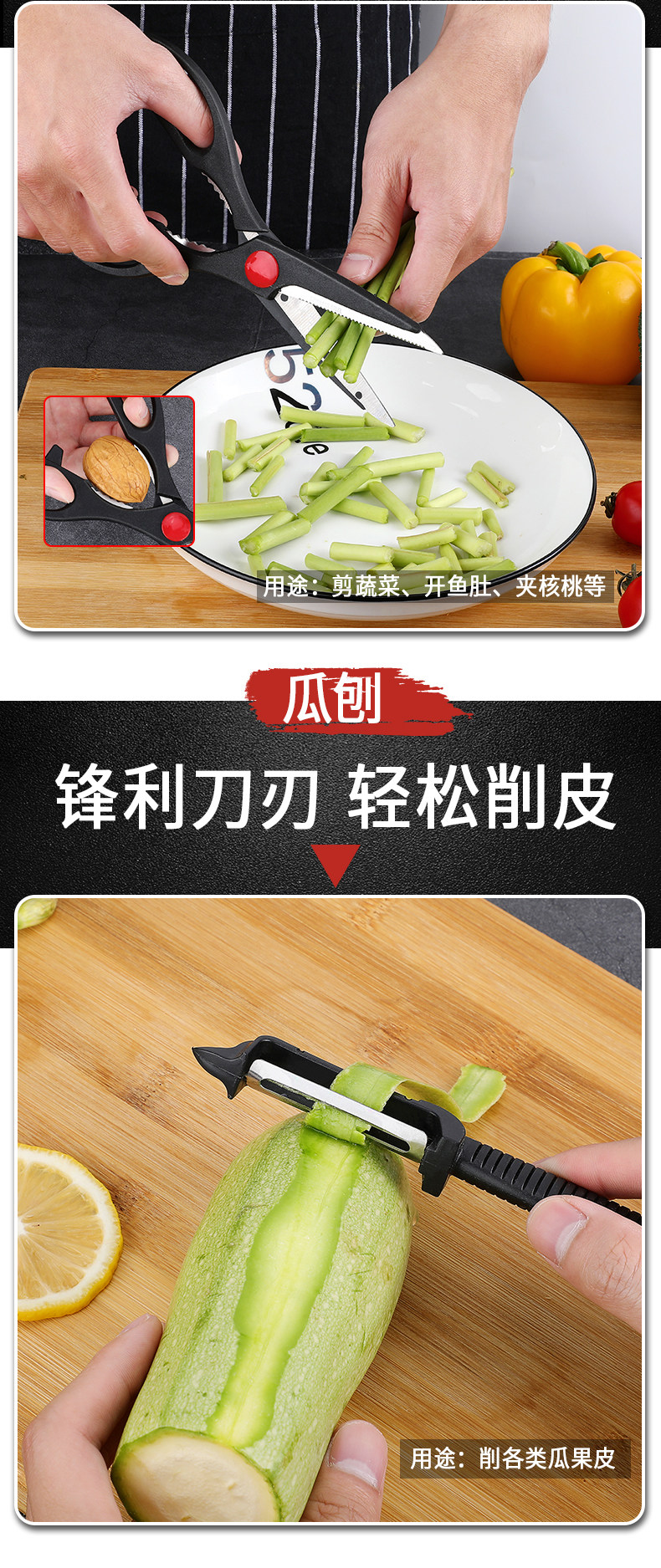Нож, комплект, кухонная утварь, набор, 2 в 1, полный комплект