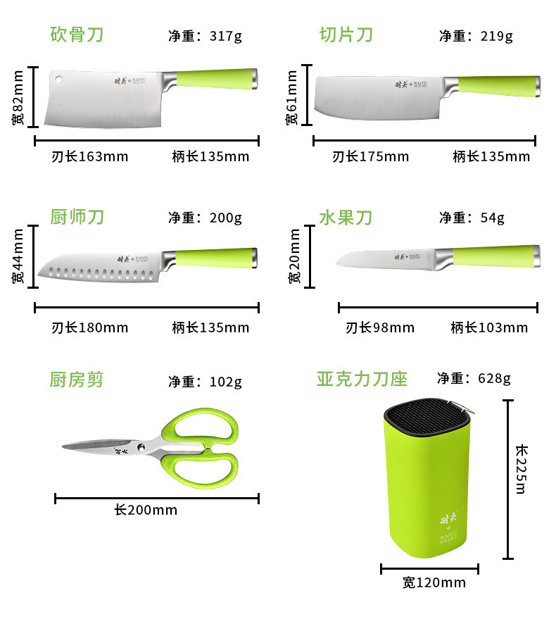 耐夫 Полный комплект ножа из нержавеющей стали.