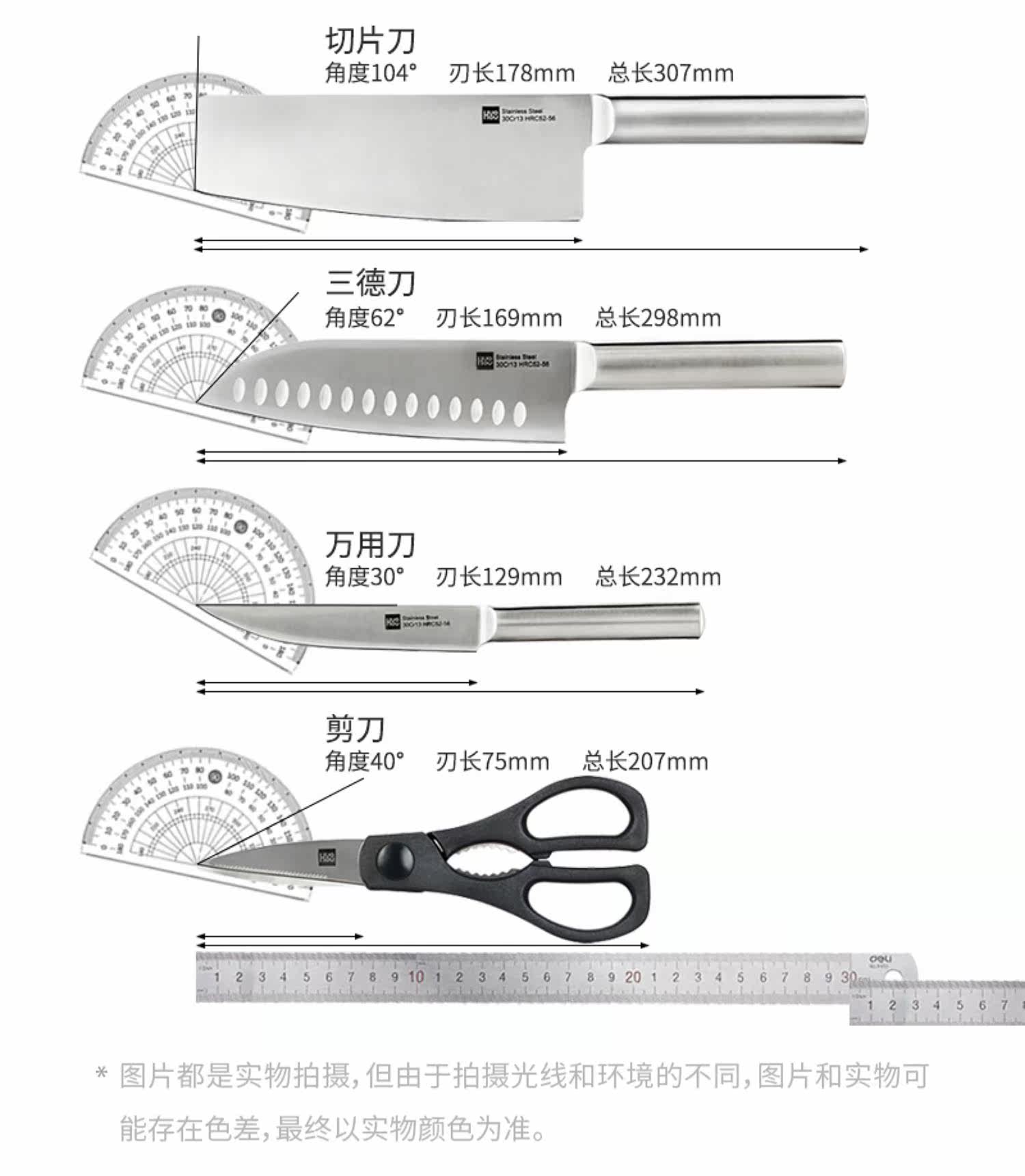 火候 Нож, комплект, набор из нержавеющей стали, 5 шт, полный комплект