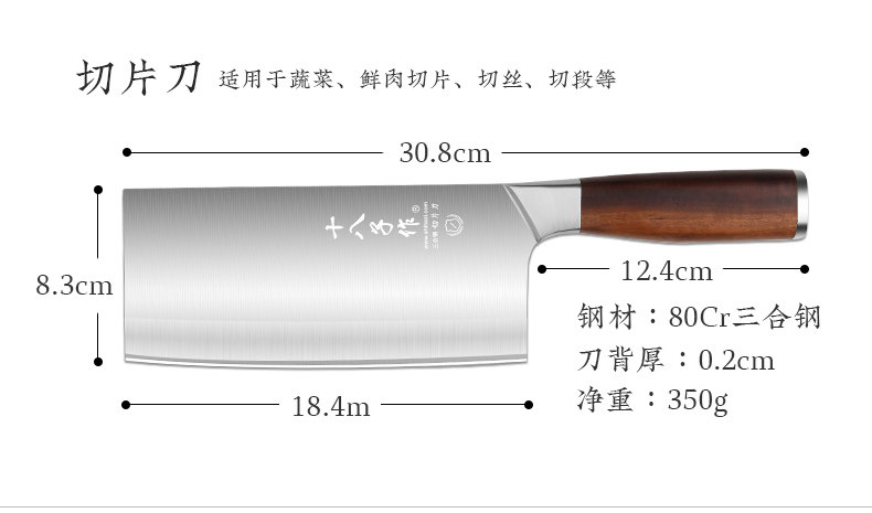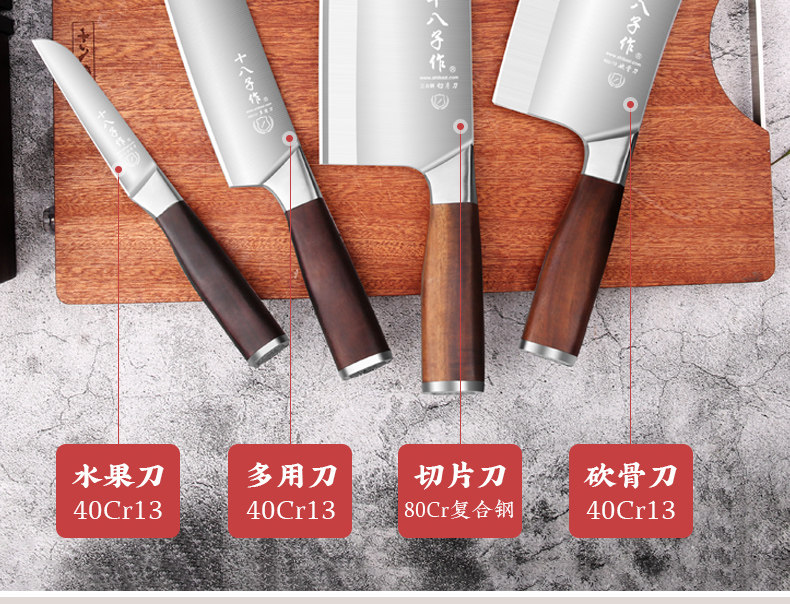 十八子作 Кухонный кухонный набор ножей Комбинация 80cr Композитный стальный самодирапа