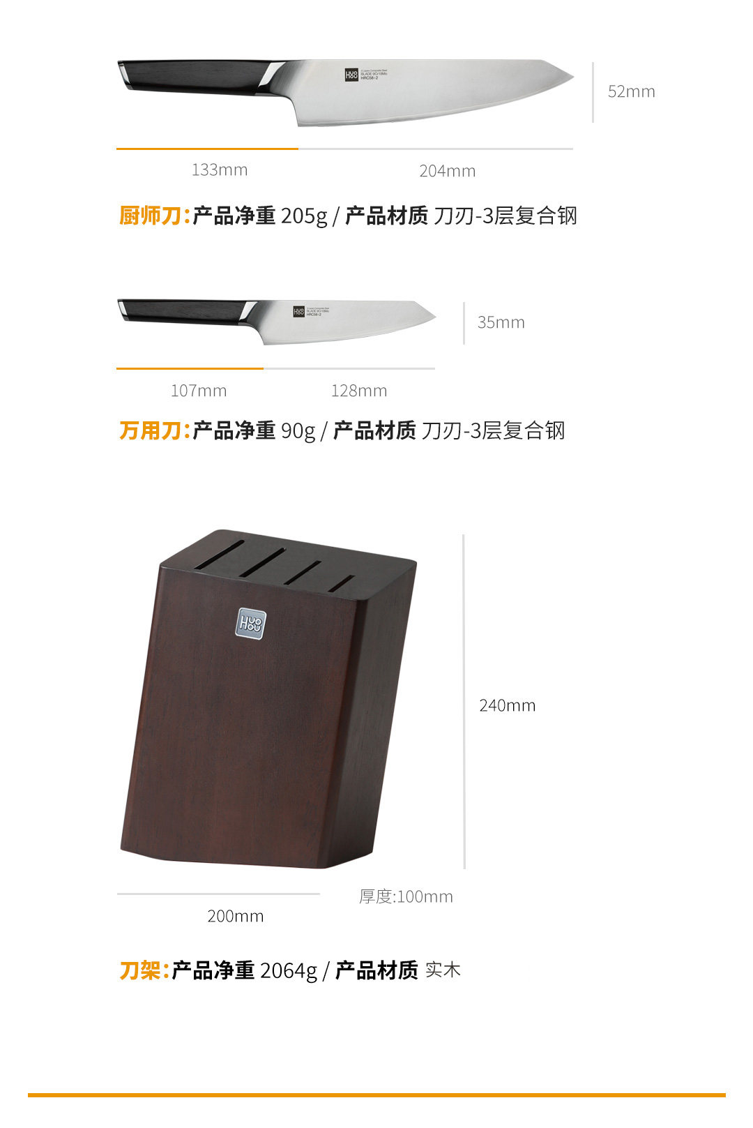 火候 Композитный стальный нож с пятью частями для домашних шеф-повар
