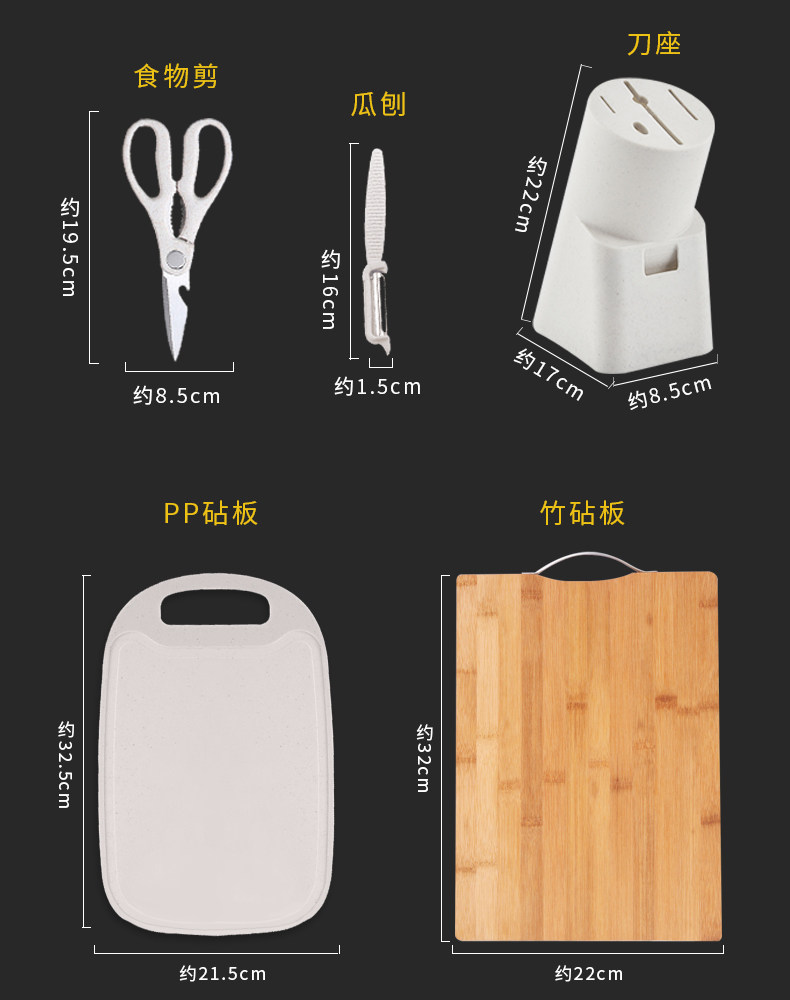 Кухонная утварь, комплект, нож, разделочная доска, полный комплект, 2 в 1