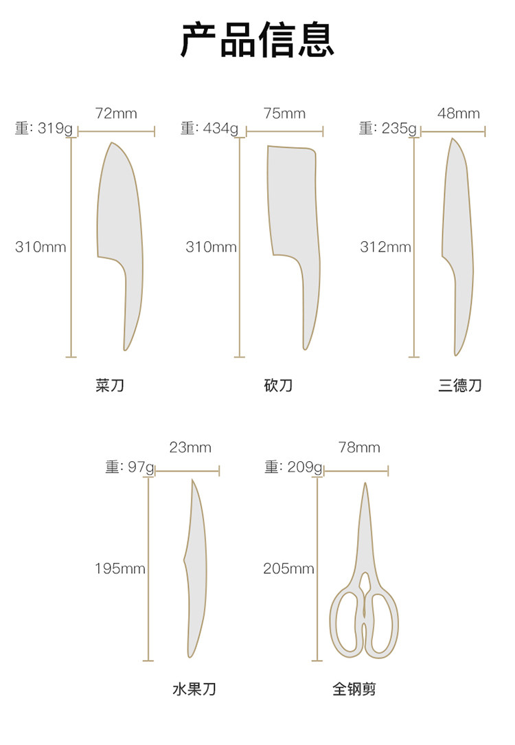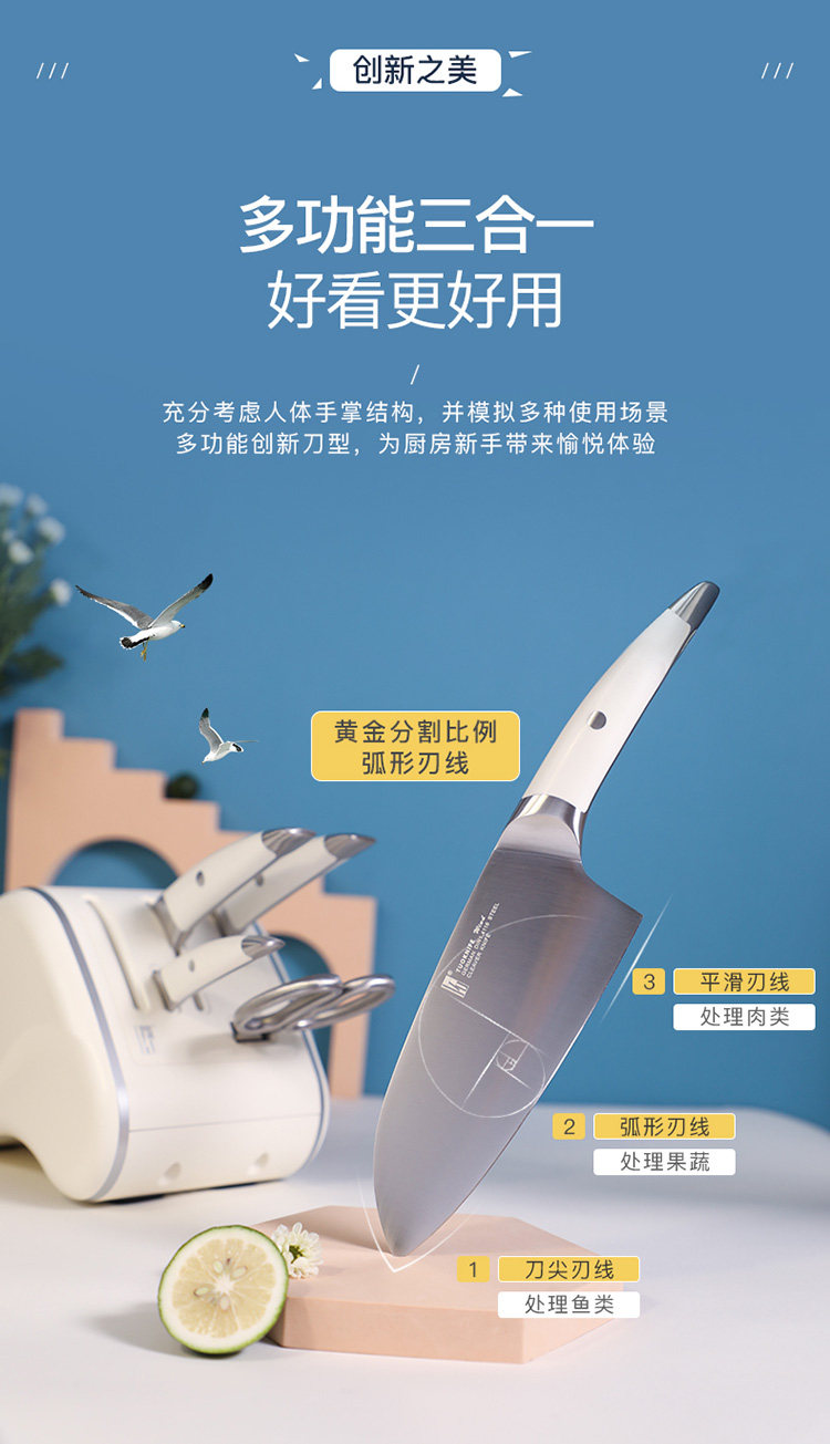 拓 Белый импортный комплект из нержавеющей стали, нож, полный комплект