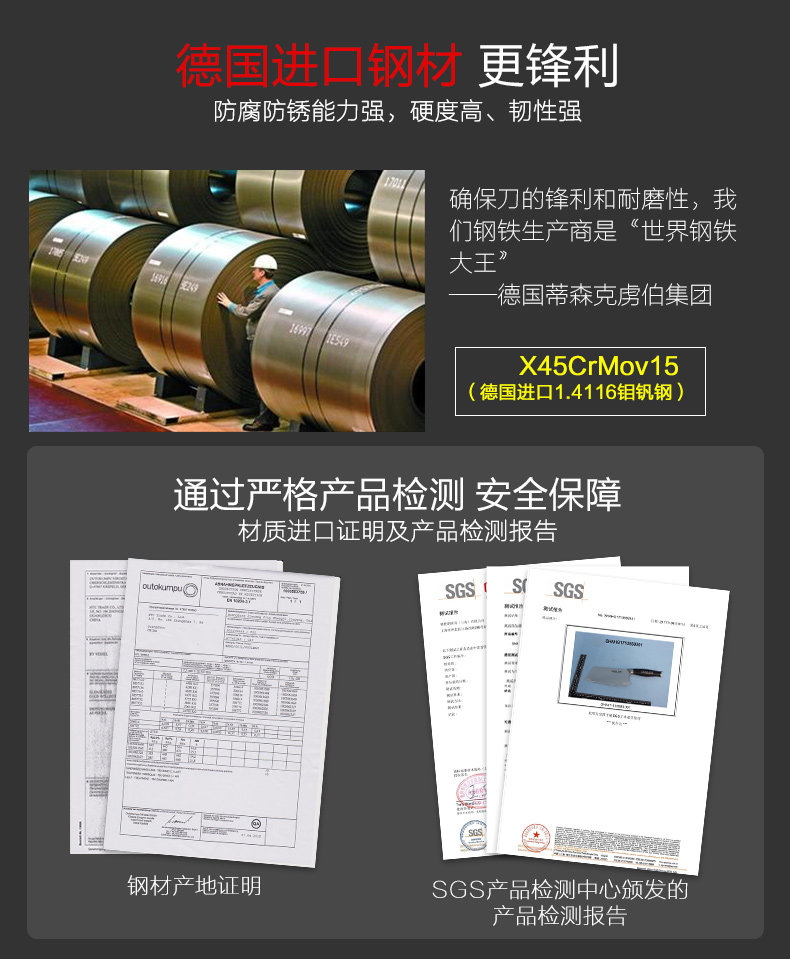 Импортный прочный нож, элитный комплект, Германия, материал