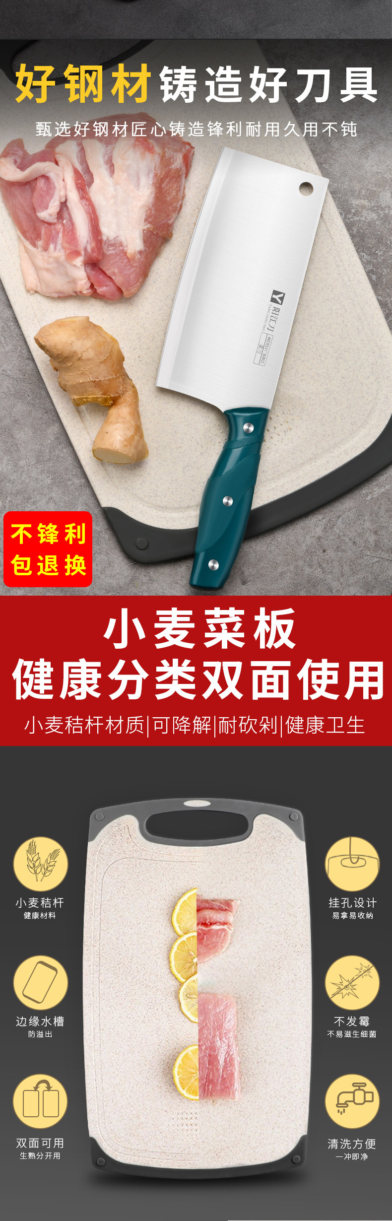 Нож из нержавеющей стали, разделочная доска, комплект, кухонная утварь, 2 в 1