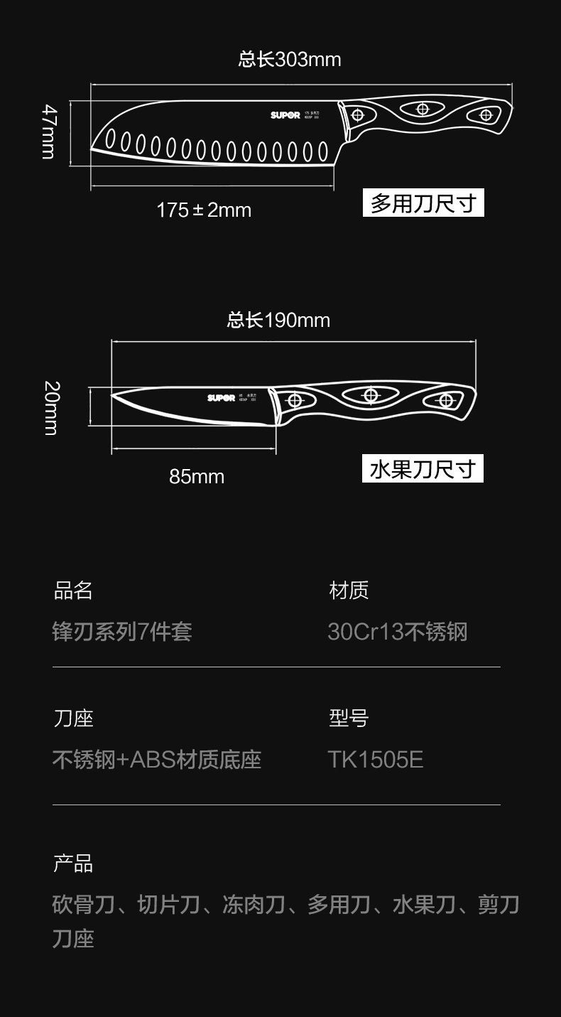 Supor Knife Set Kinwerware Set Full набор домашнего кухонного ножа кусочка кусочка ножа фрукты.