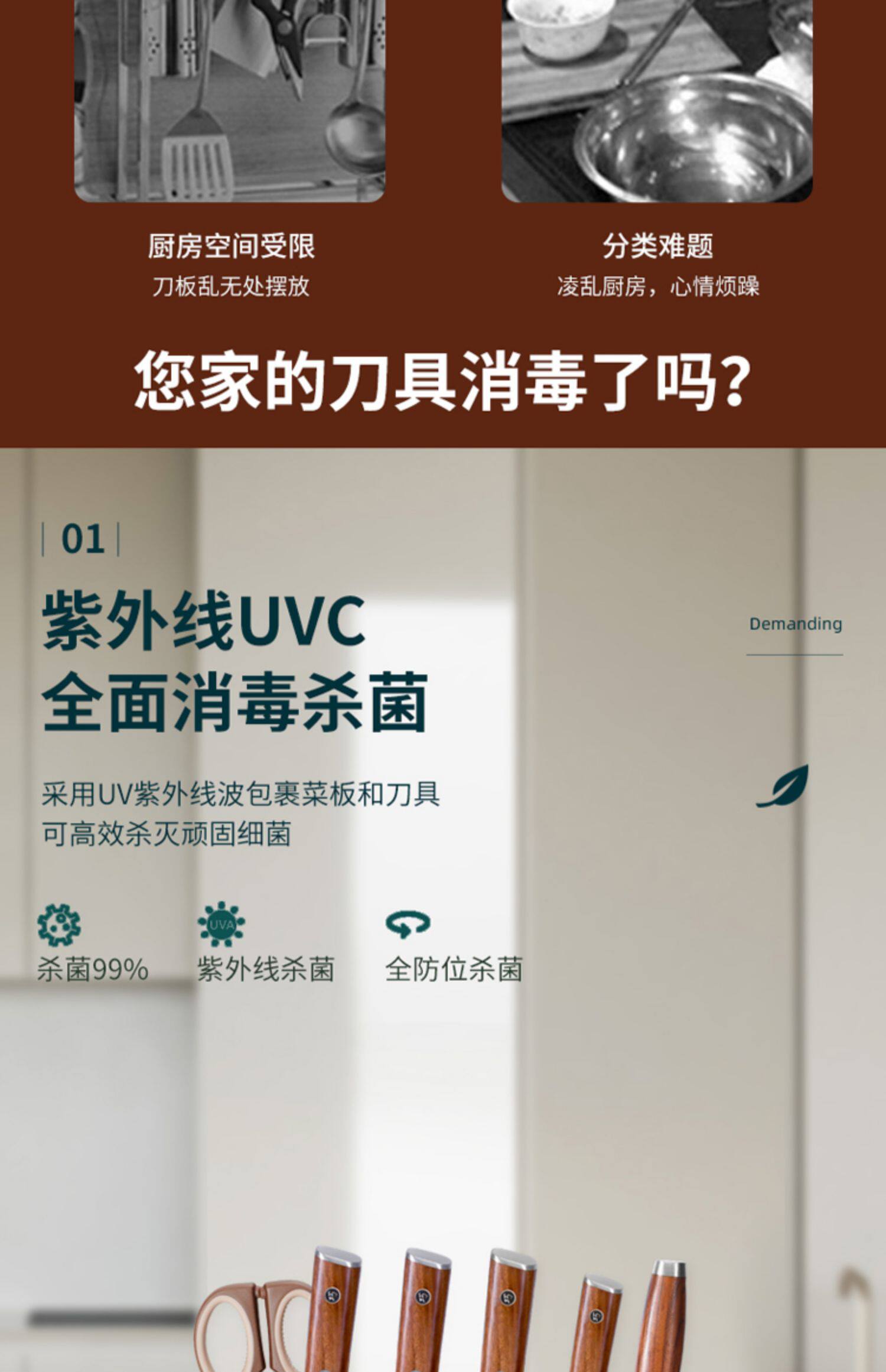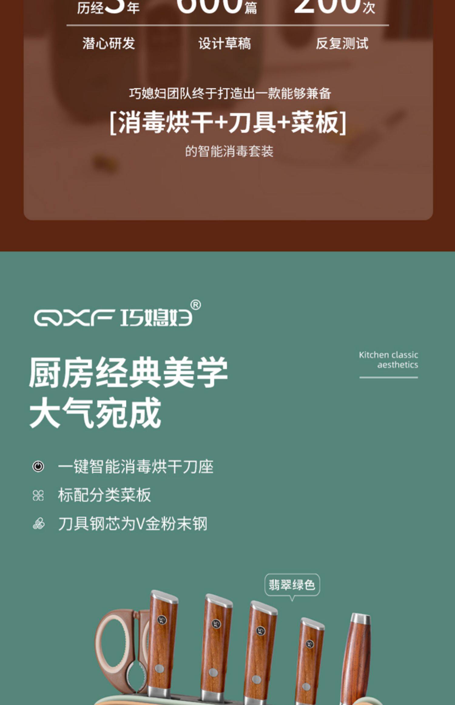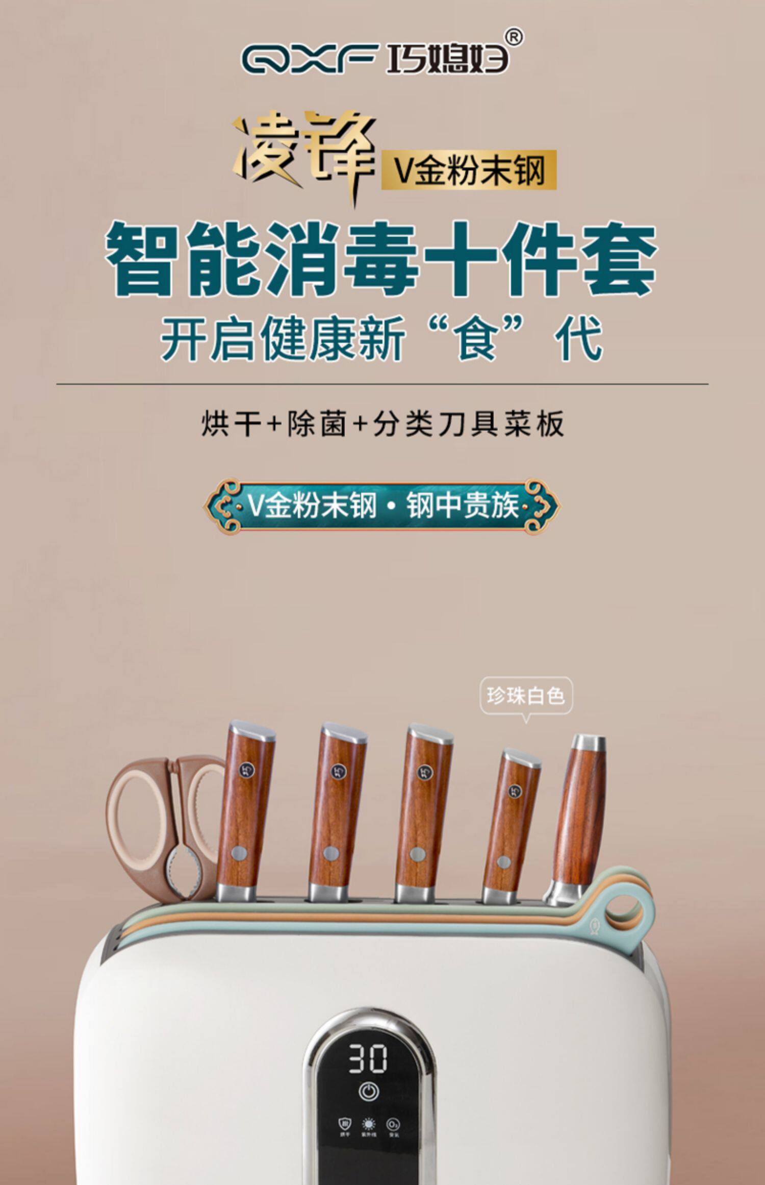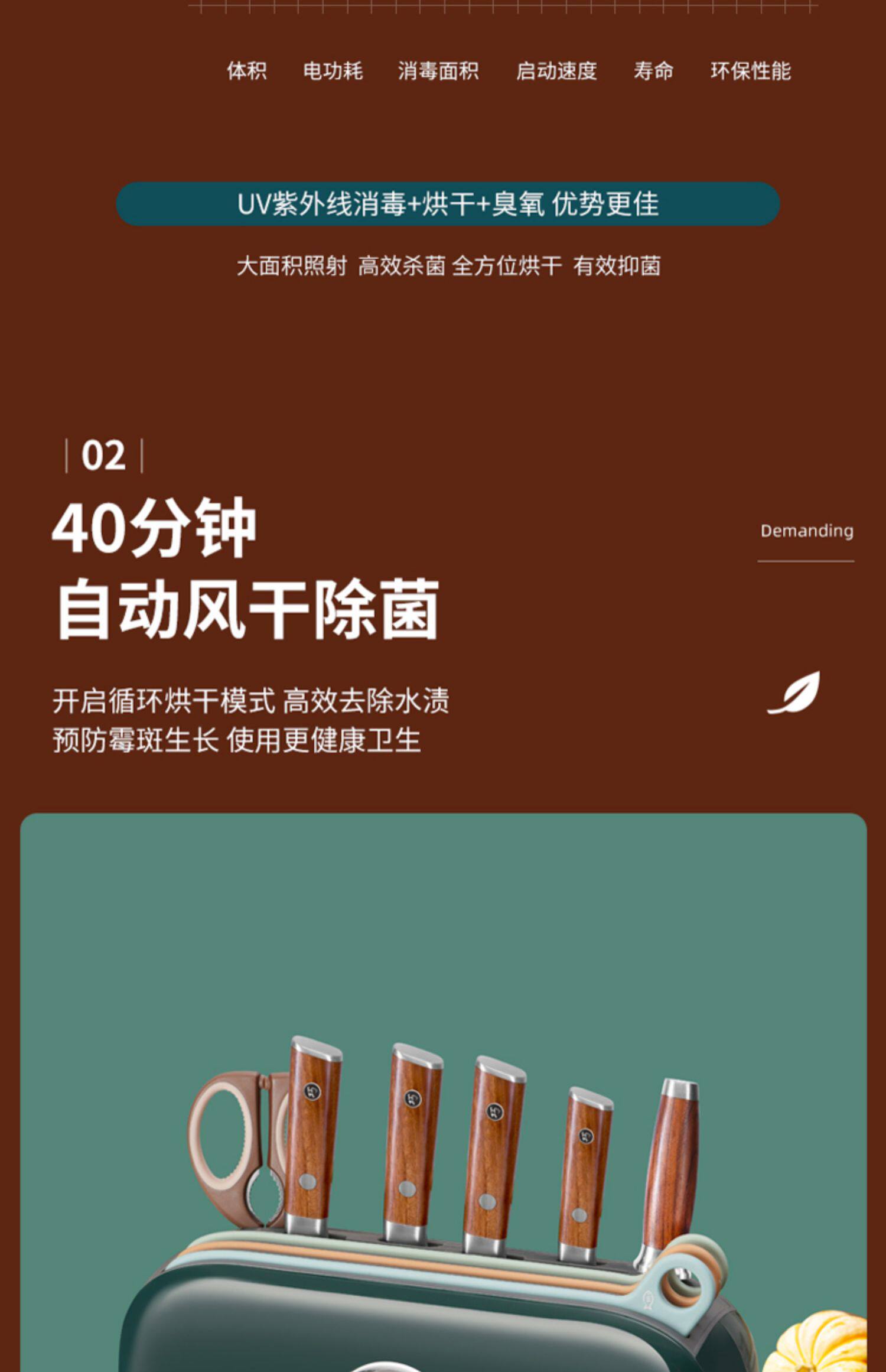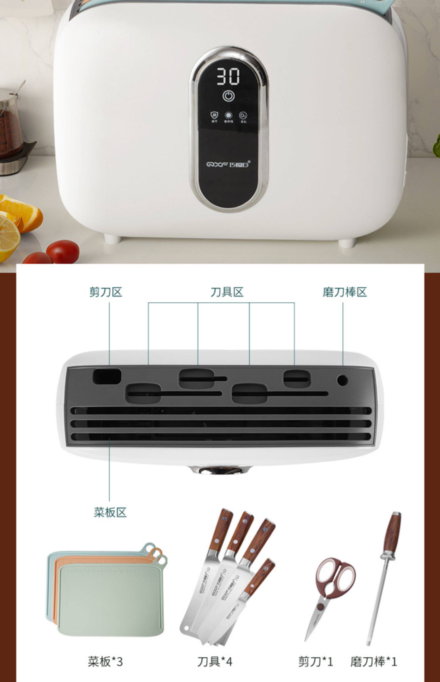 Qiao Daught -in -Law Kitchen Knife и режущая доска интеллектуальная дезинфекция и сушка десять комплектов ножного кухонного дома Комбинация кухонных нож
