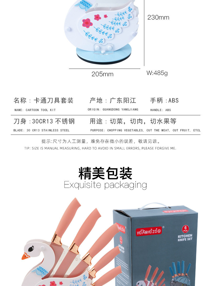 Мультяшный нож, детский комплект из нержавеющей стали, 6 шт