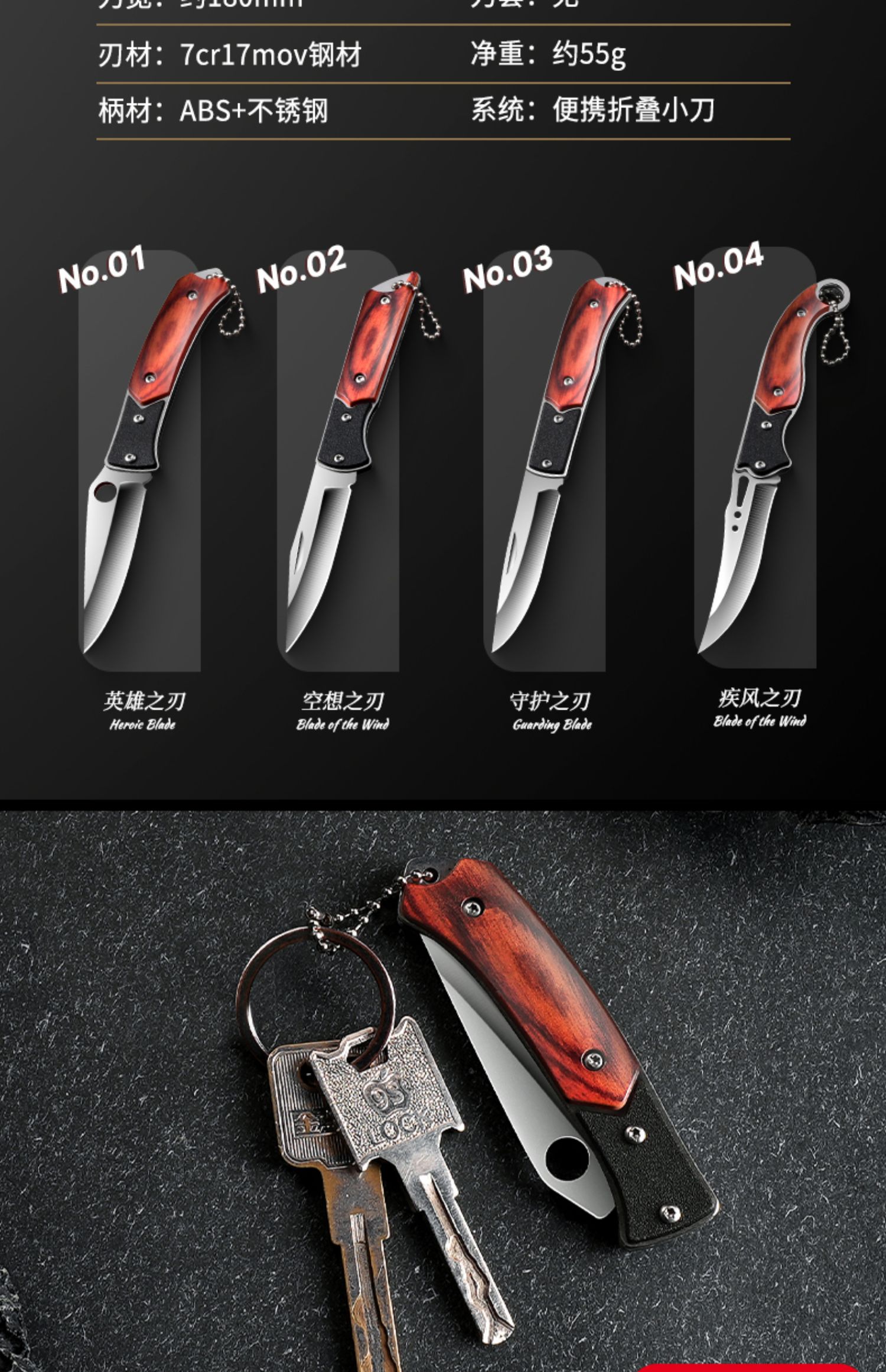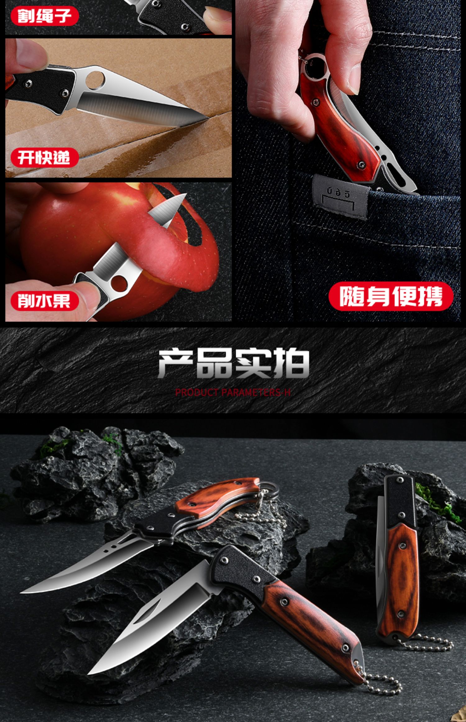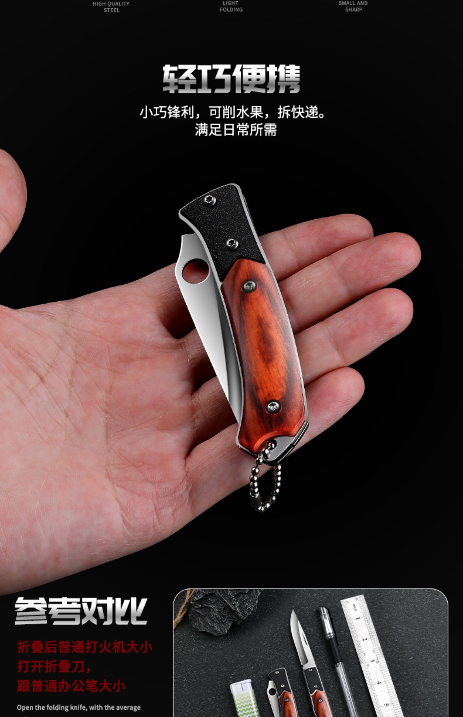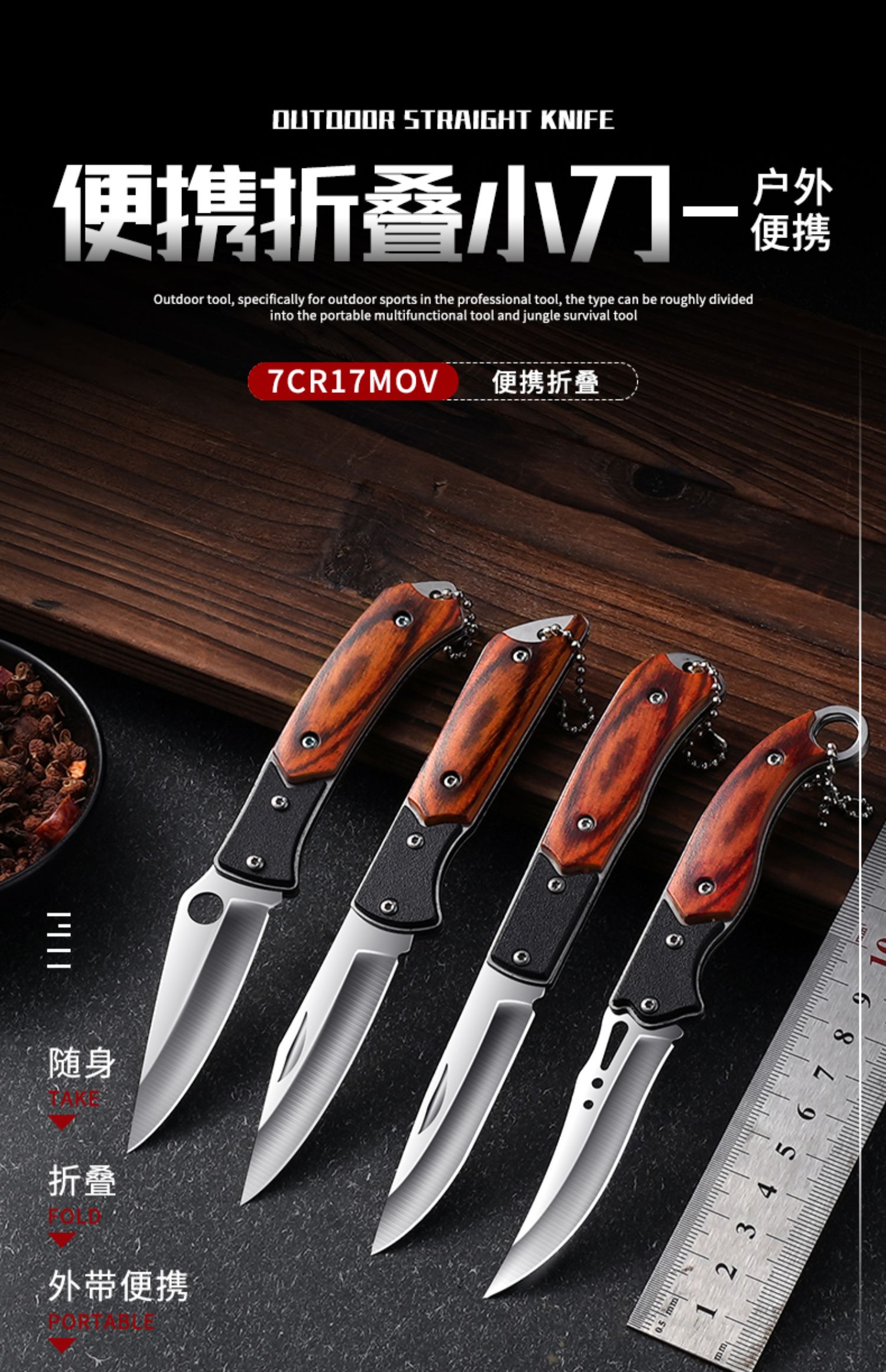 Портативный нож на открытом воздухе складной нож анти -кузов много -функция с фруктовым ножом Высокая твердость из нержавеющей стали в китайском стиле