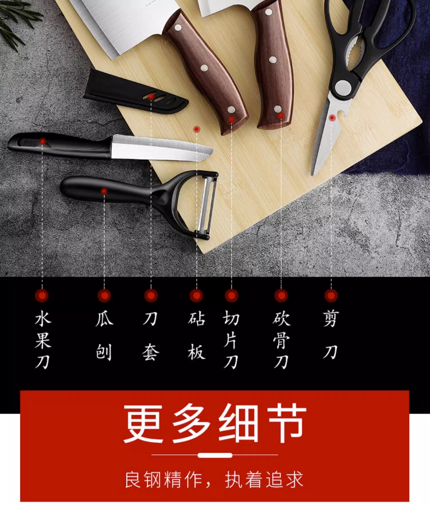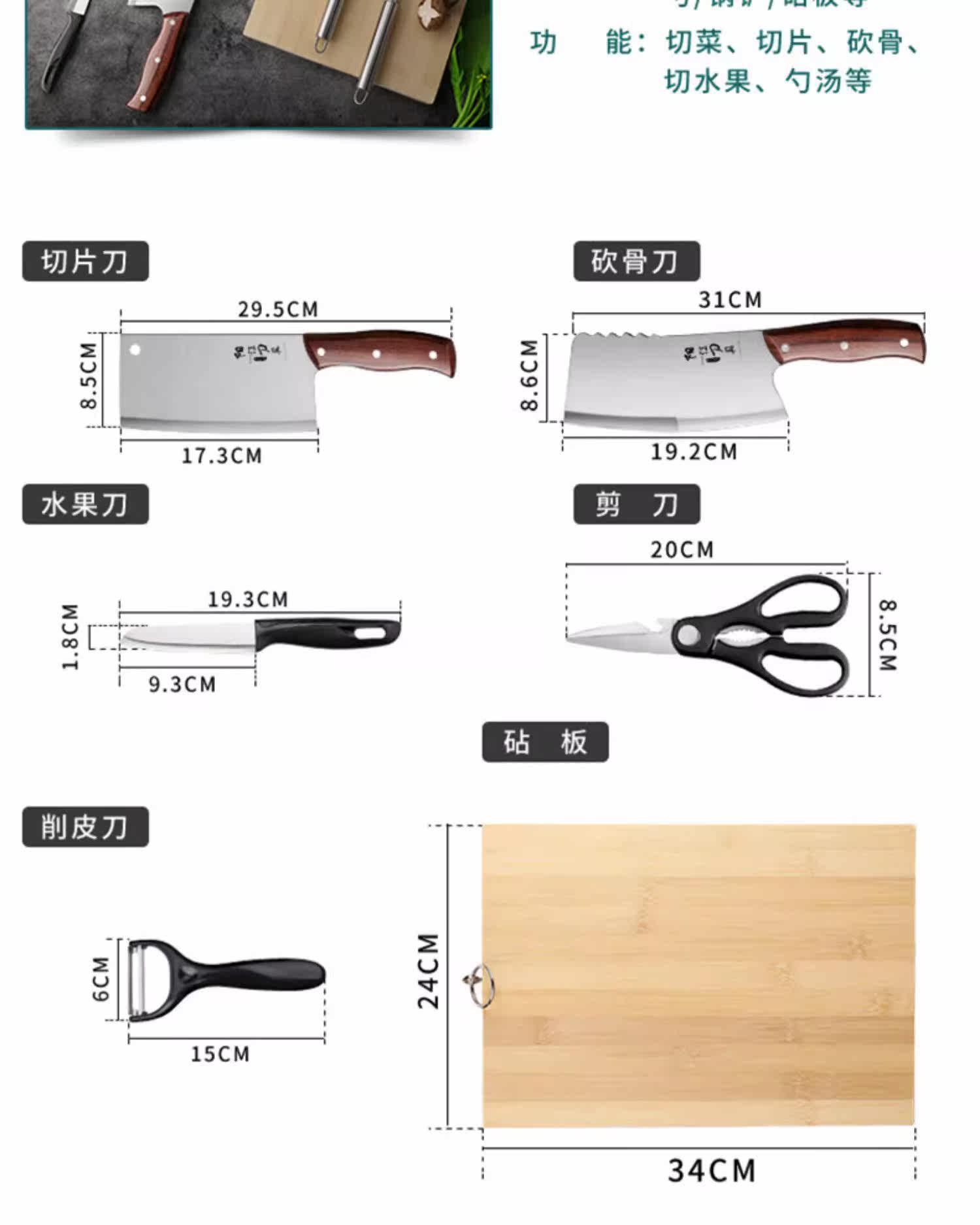 Нож, комплект из нержавеющей стали, кухонная утварь, 2 в 1, полный комплект