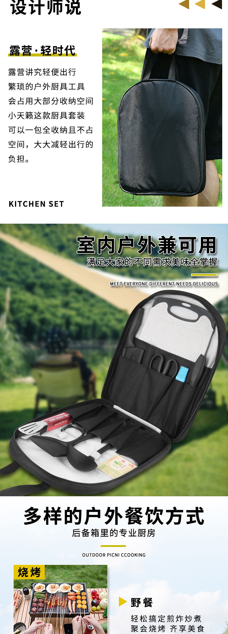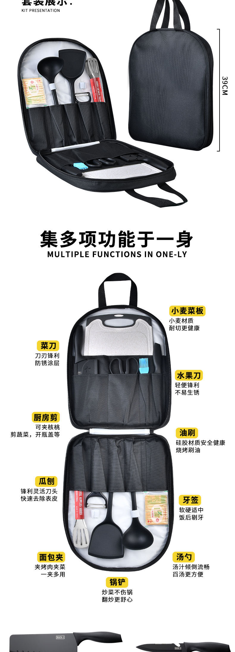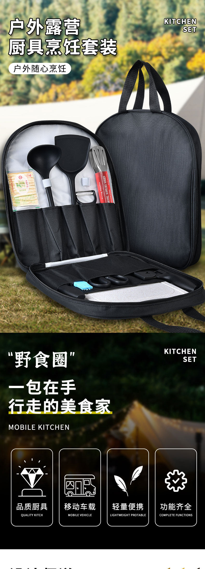 Дорожное снаряжение для кемпинга, нож, портативный комплект, сумка-органайзер, 2 в 1, полный комплект