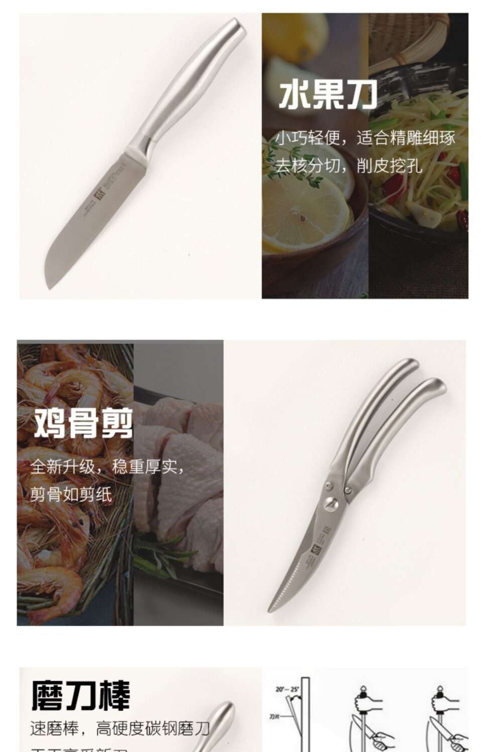 Германия Шуанли Нож ВСЕ -Стейль набор семи -части домашней кухни из нержавеющей стали среднего ножа.