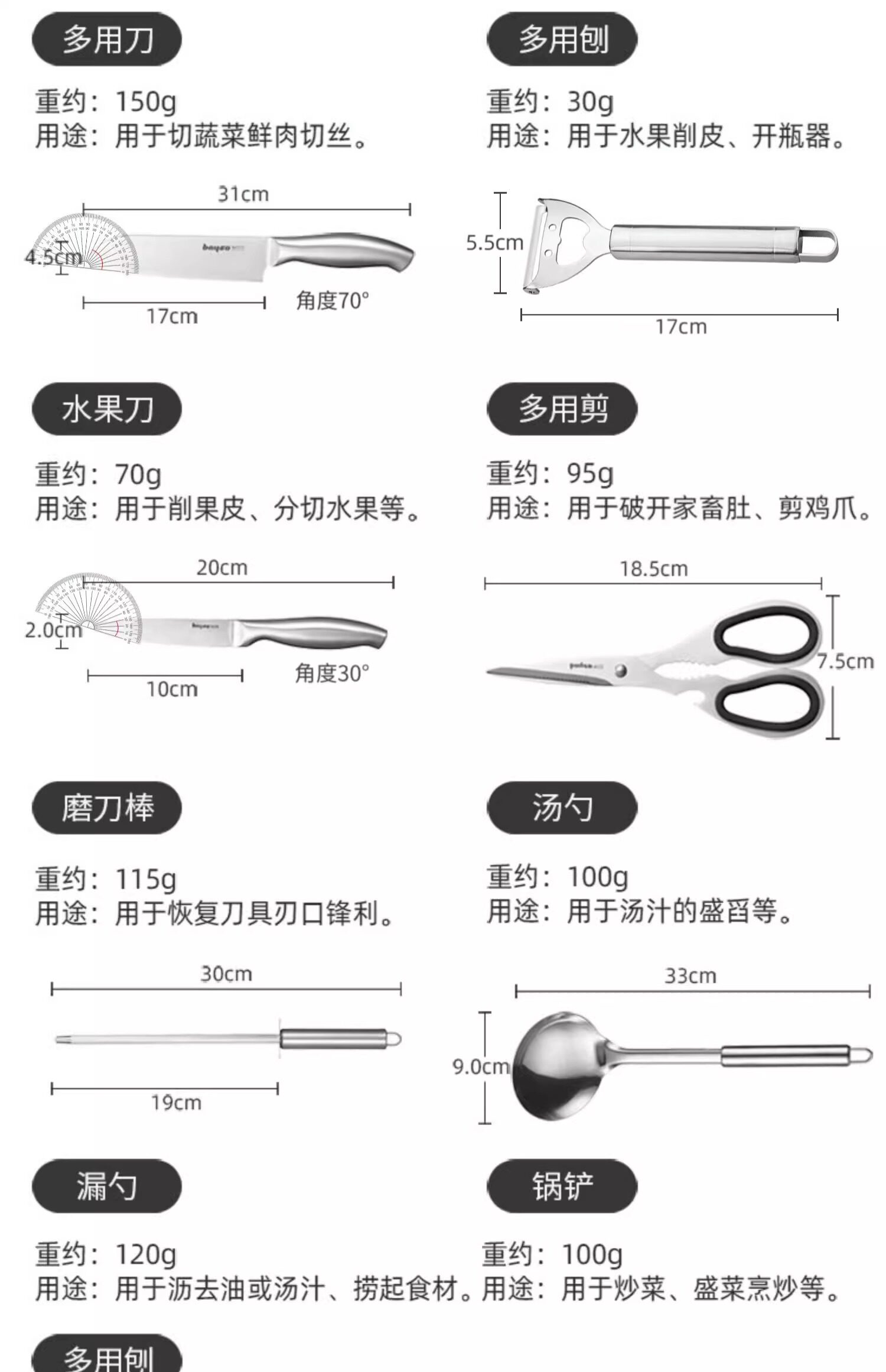Нож, комплект, кухонная утварь из нержавеющей стали, полный комплект