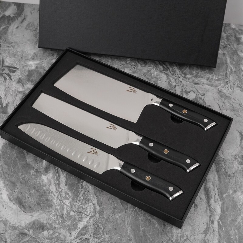 Damascus Стальный нож с тремя вещами высокого ножа кухонный нож кухонный нож.